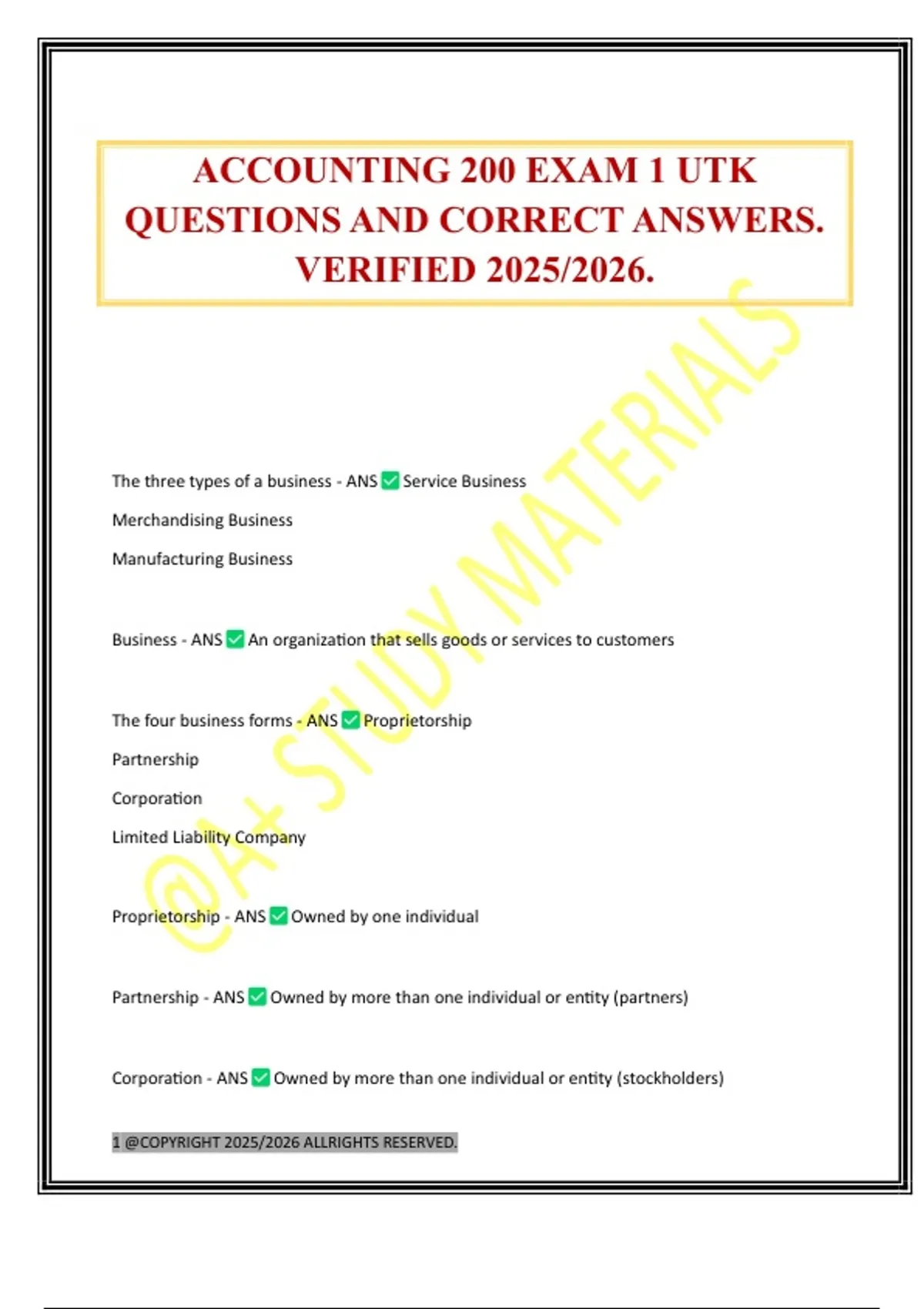 ACCOUNTING 200 EXAM 1 UTK QUESTIONS AND CORRECT ANSWERS. VERIFIED 2025/2026.