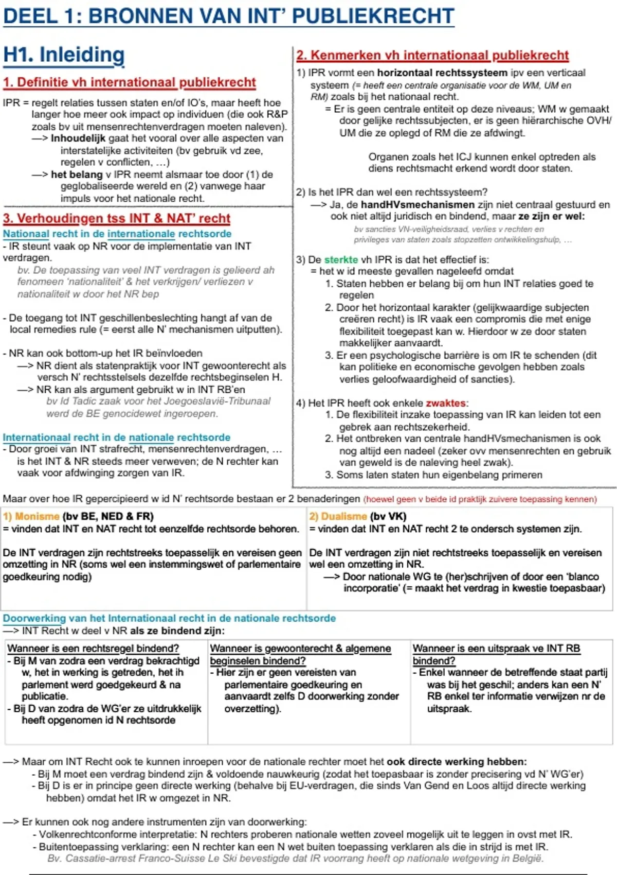 H1. Inleiding 2. Kenmerken vh internationaal publiekrecht