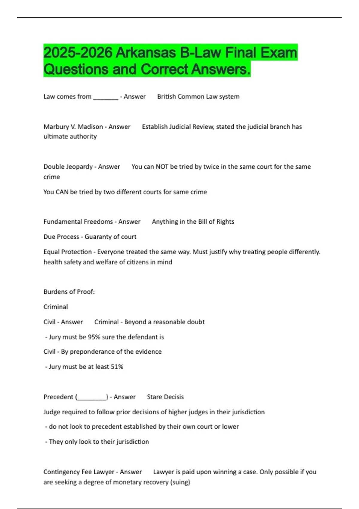 Arkansas B-Law Final Exam Questions and Correct Answers.