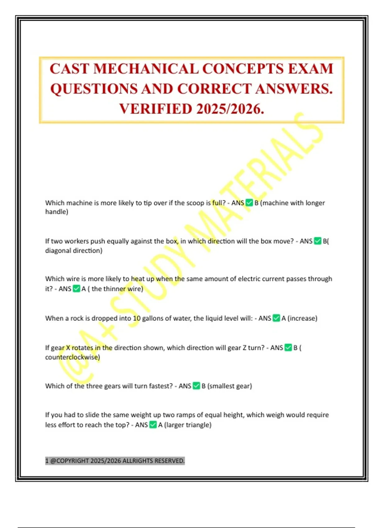 CAST MECHANICAL CONCEPTS EXAM QUESTIONS AND CORRECT ANSWERS. VERIFIED 2025/2026.