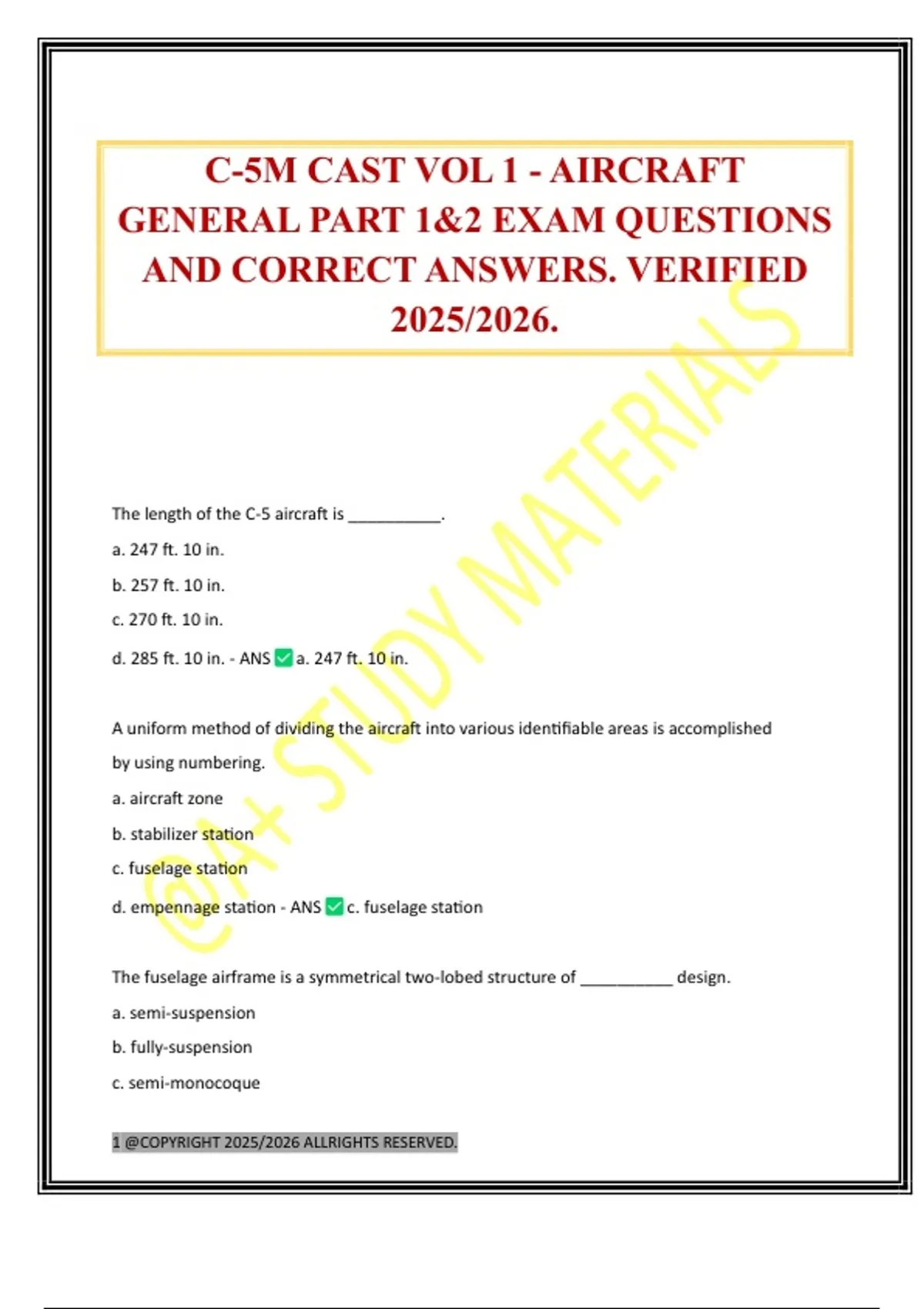 GENERAL PART 1&2 EXAM QUESTIONS