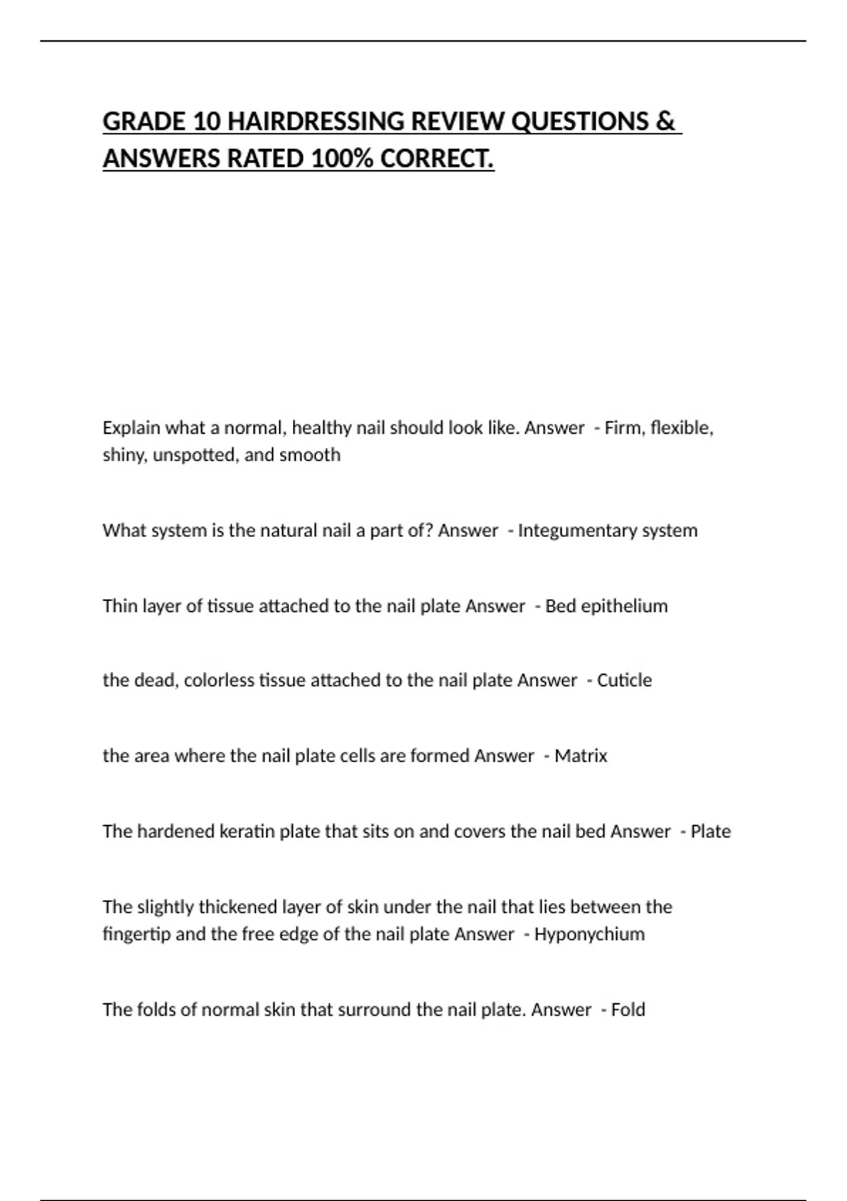GRADE 10 HAIRDRESSING REVIEW QUESTIONS & ANSWERS RATED 100% CORRECT.