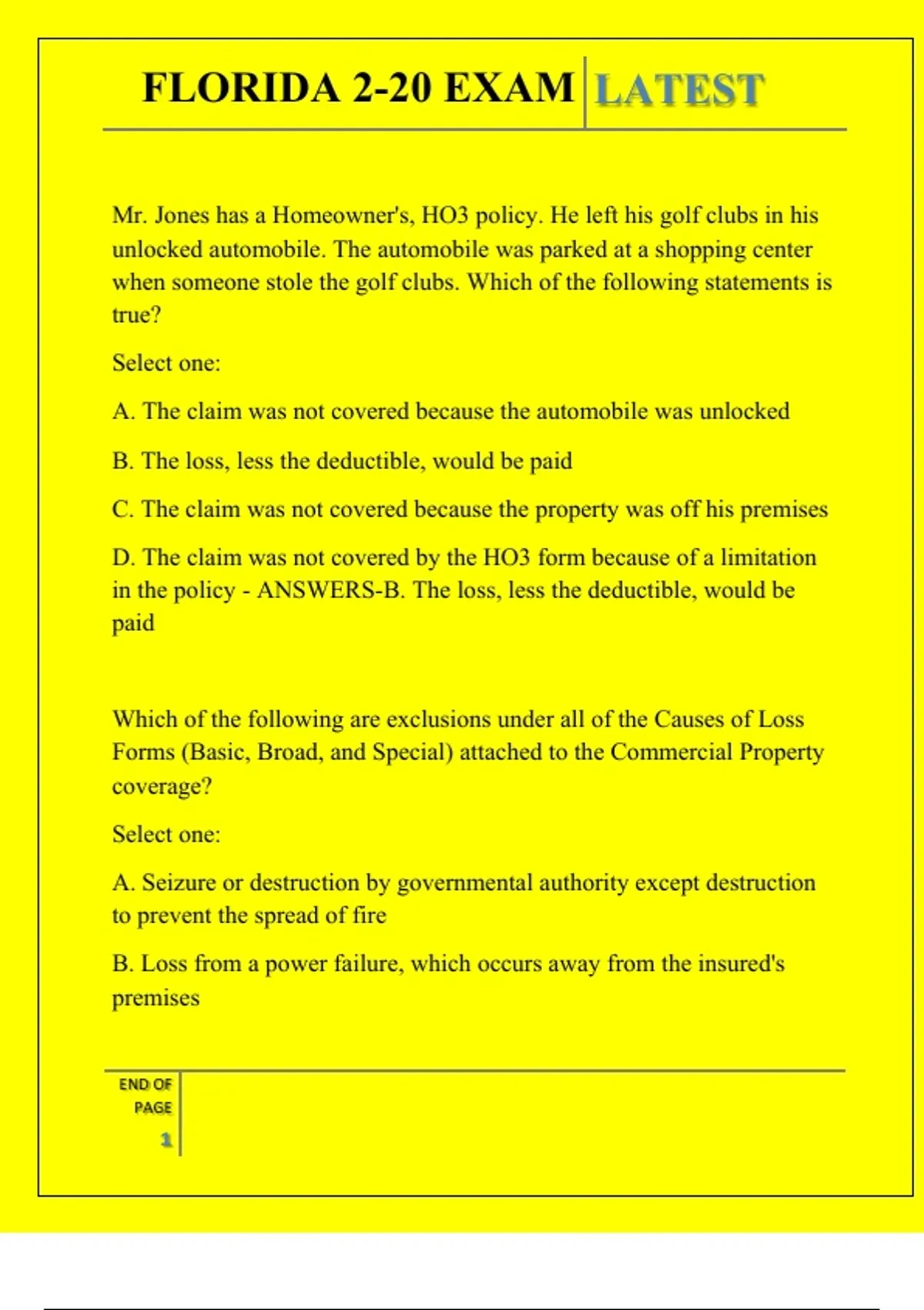 , FLORIDA 2-20 EXAM LATEST
