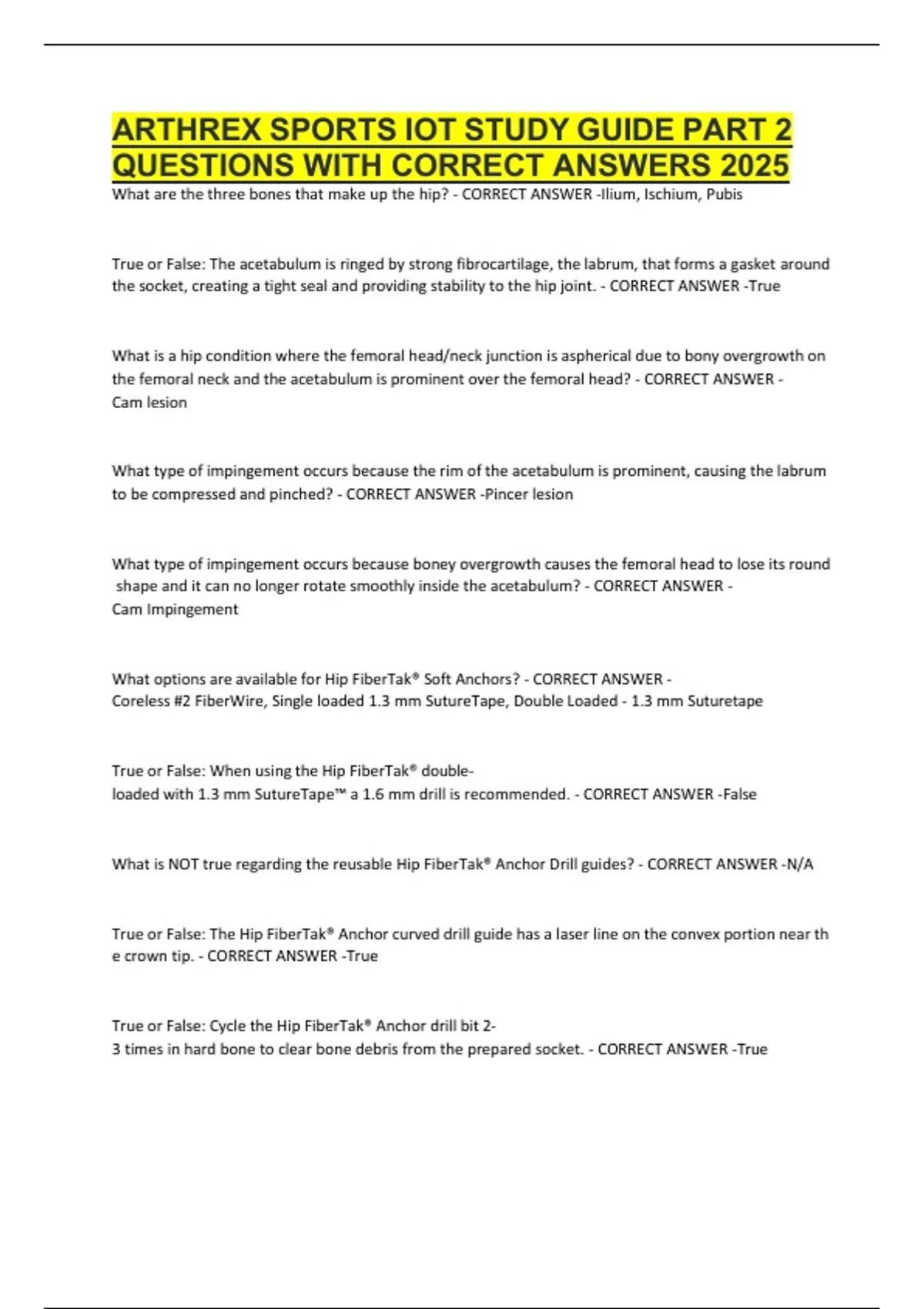 ARTHREX SPORTS IOT STUDY GUIDE PART 2 QUESTIONS WITH CORRECT ANSWERS 2025