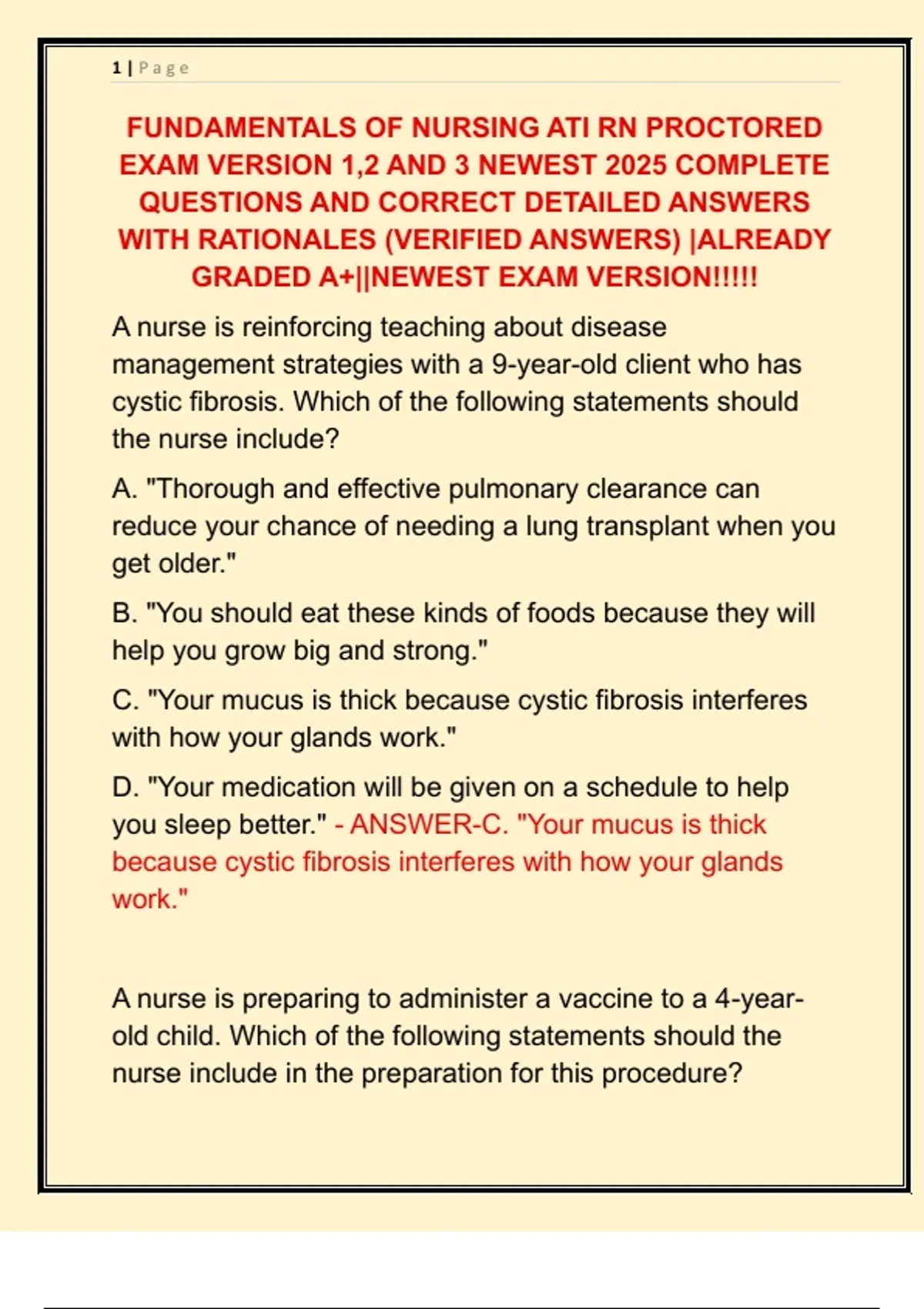 FUNDAMENTALS OF NURSING ATI RN PROCTORED EXAM VERSION 1,2 AND 3 NEWEST 2025 COMPLETE QUESTIONS AND CORRECT DETAILED ANSWERS WITH RATIONALES (VERIFIED ANSWERS) |ALREADY GRADED A+||NEWEST EXAM VERSION!!!!!