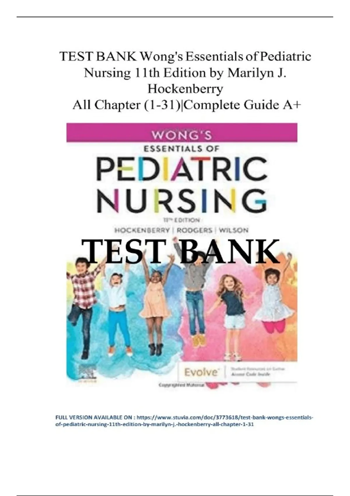 TEST BANK For Wong’s Essentials of Pediatric Nursing, 11th Edition by Marilyn Hockenberry, Cheryl Rodgers, Verified Chapters 1 - 31 Covered | Question with Correct Answers