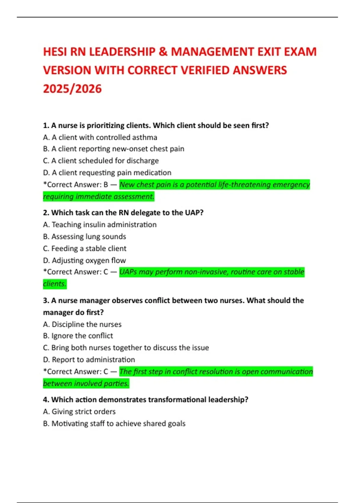 4. Which action demonstrates transformational leadership?