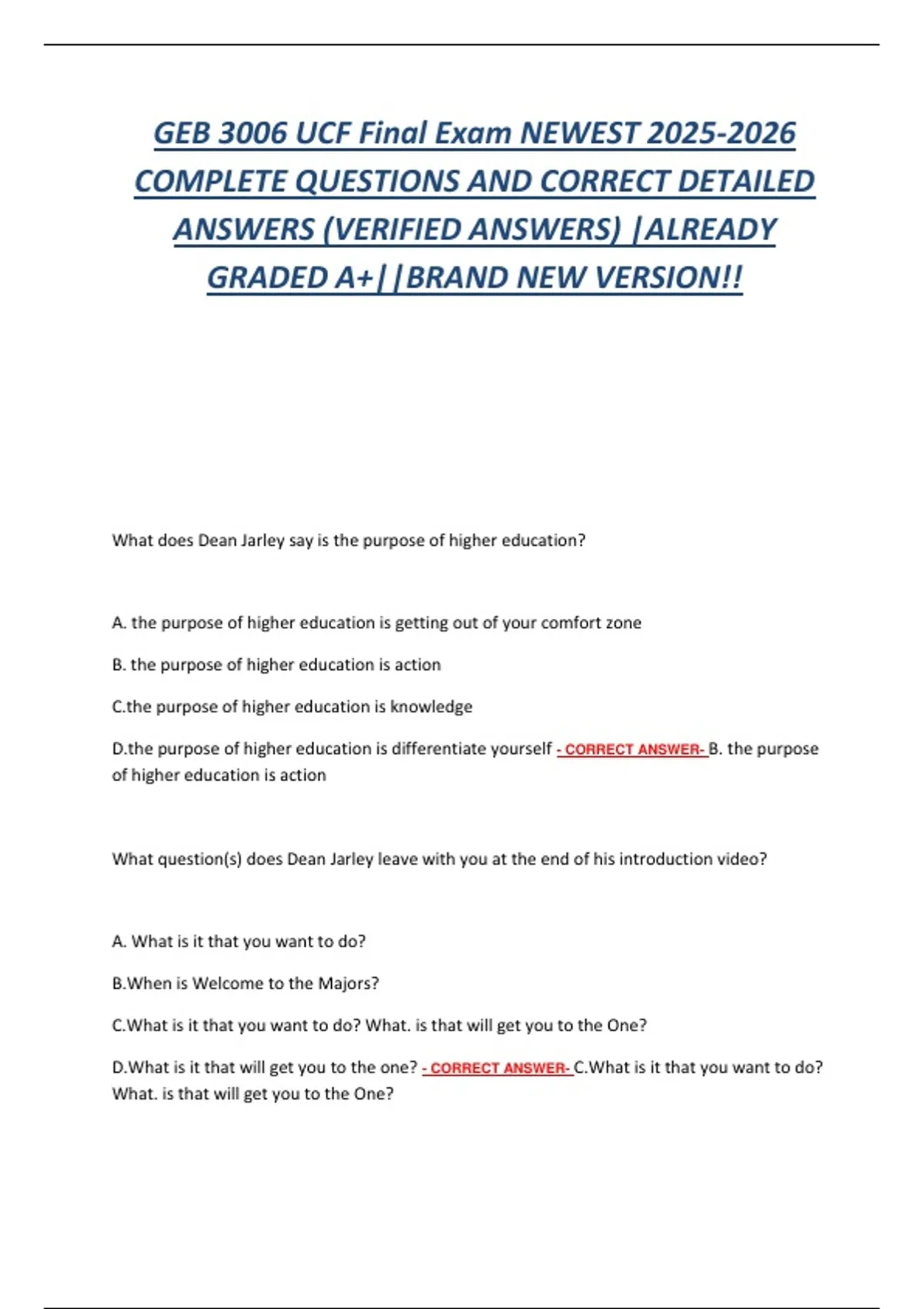 D.the purpose of higher education is differentiate yourself - CORRECT ANSWER- B. the purpose