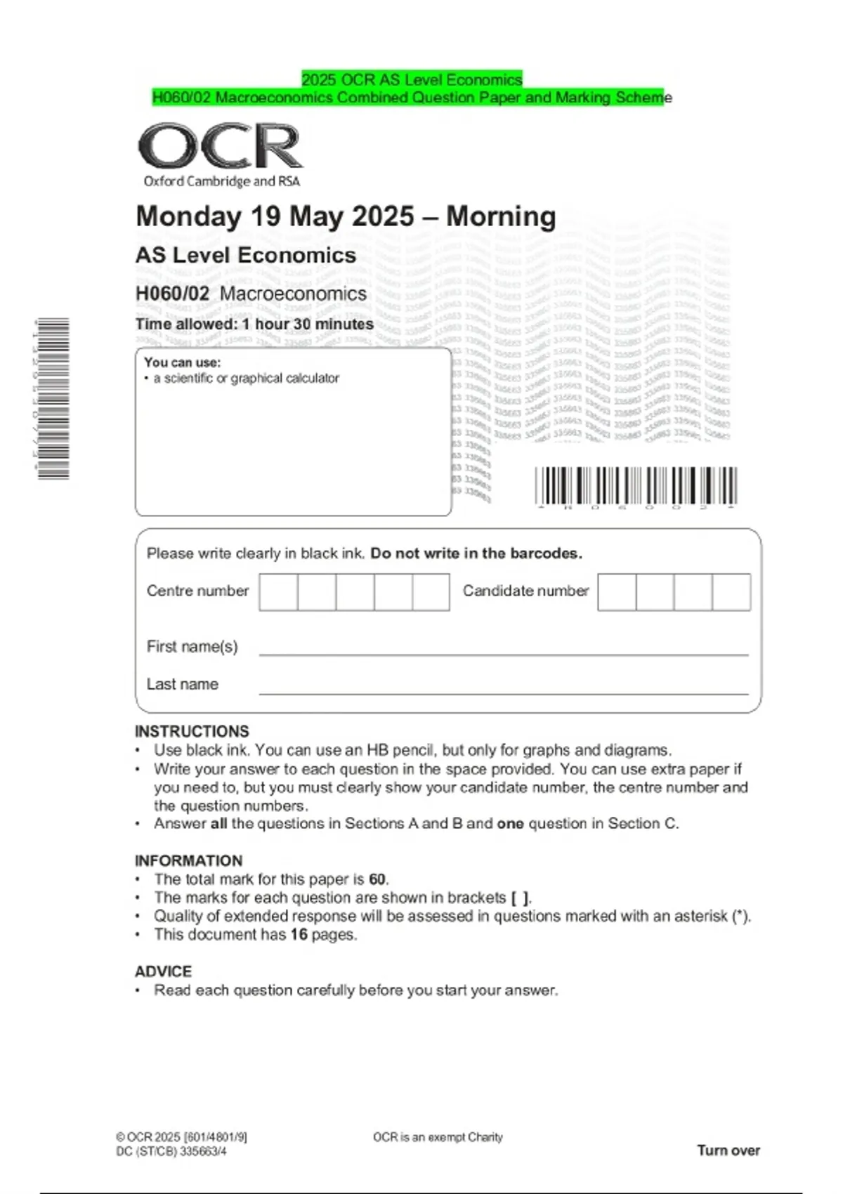 2025 OCR AS Level Economics H060/02 Macroeconomics Combined Question Paper and Marking Scheme