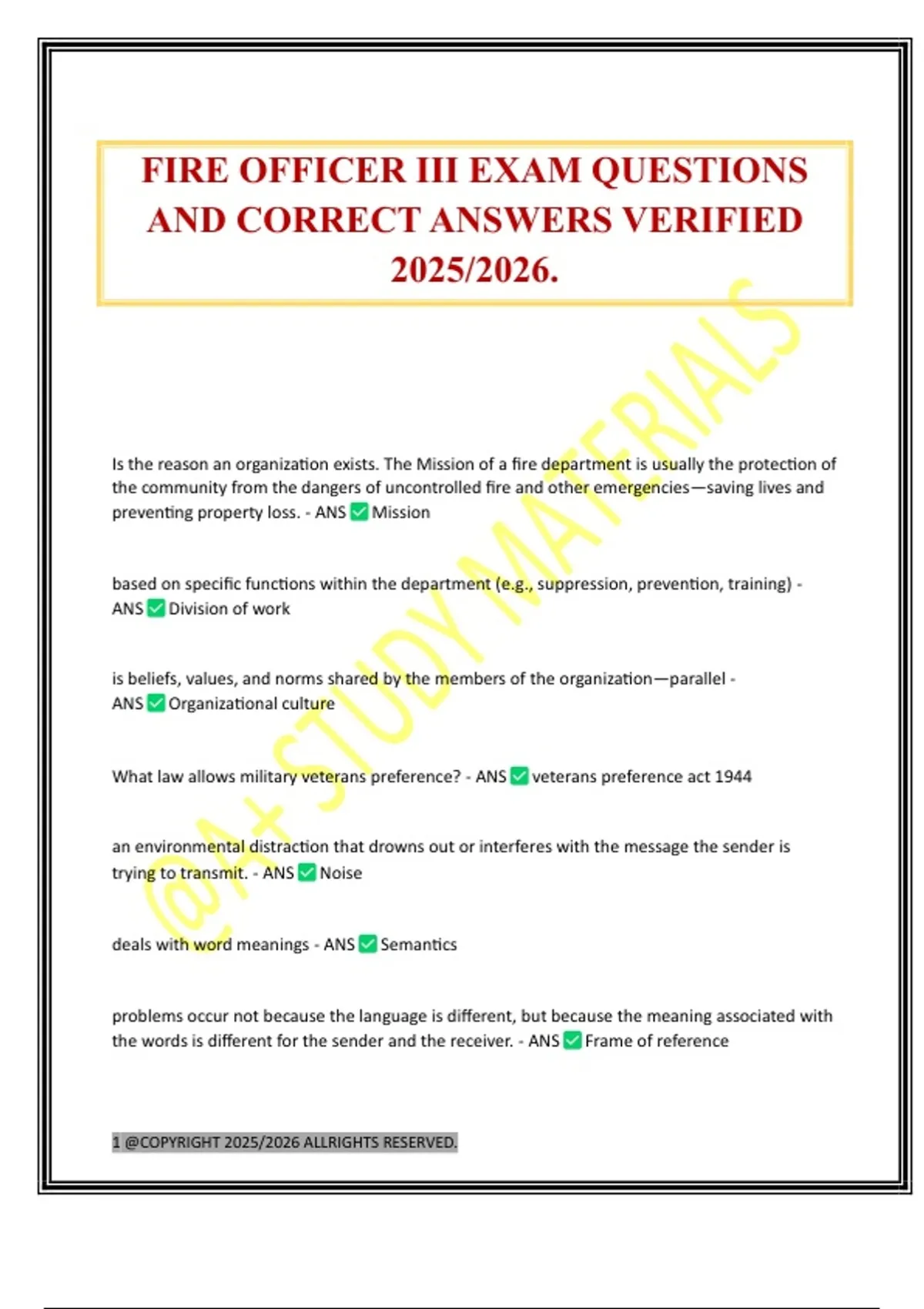 FIRE OFFICER III EXAM QUESTIONS