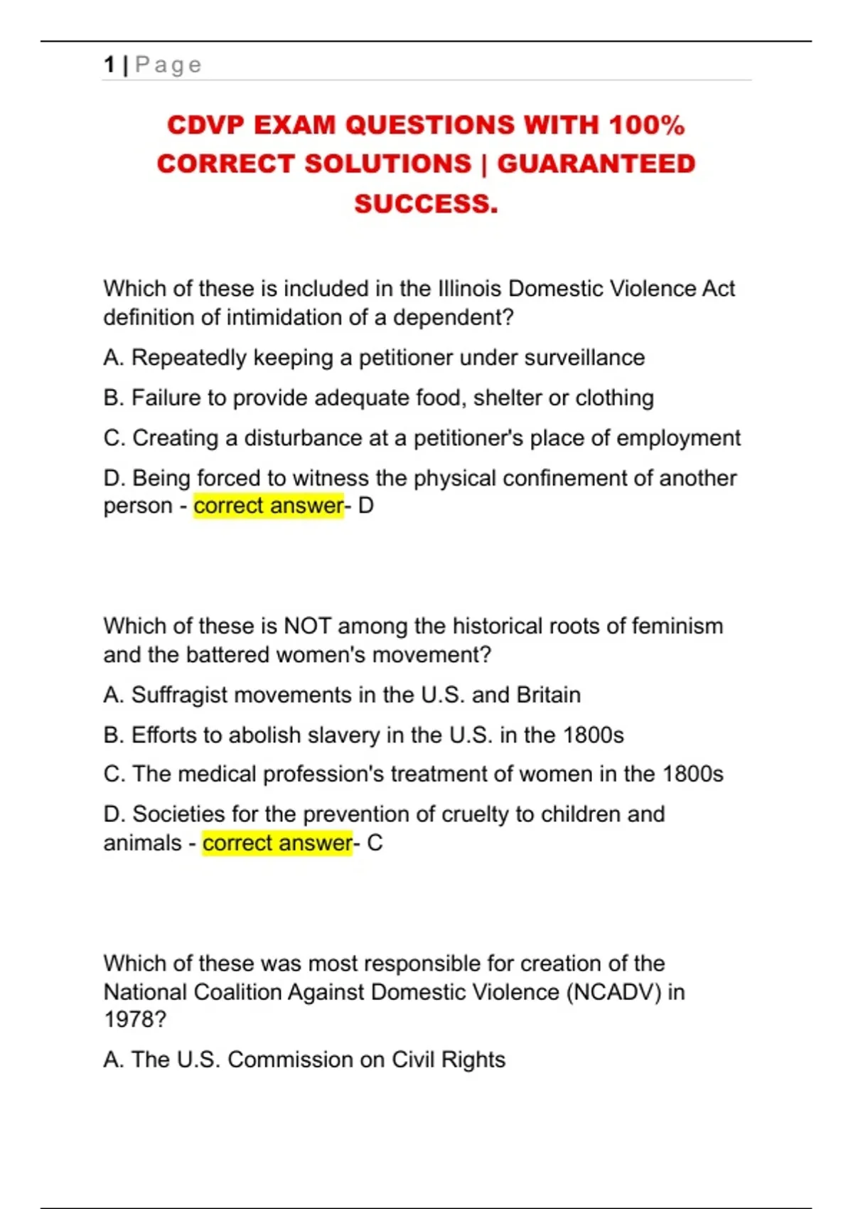 CDVP EXAM QUESTIONS WITH 100% CORRECT SOLUTIONS | GUARANTEED SUCCESS.