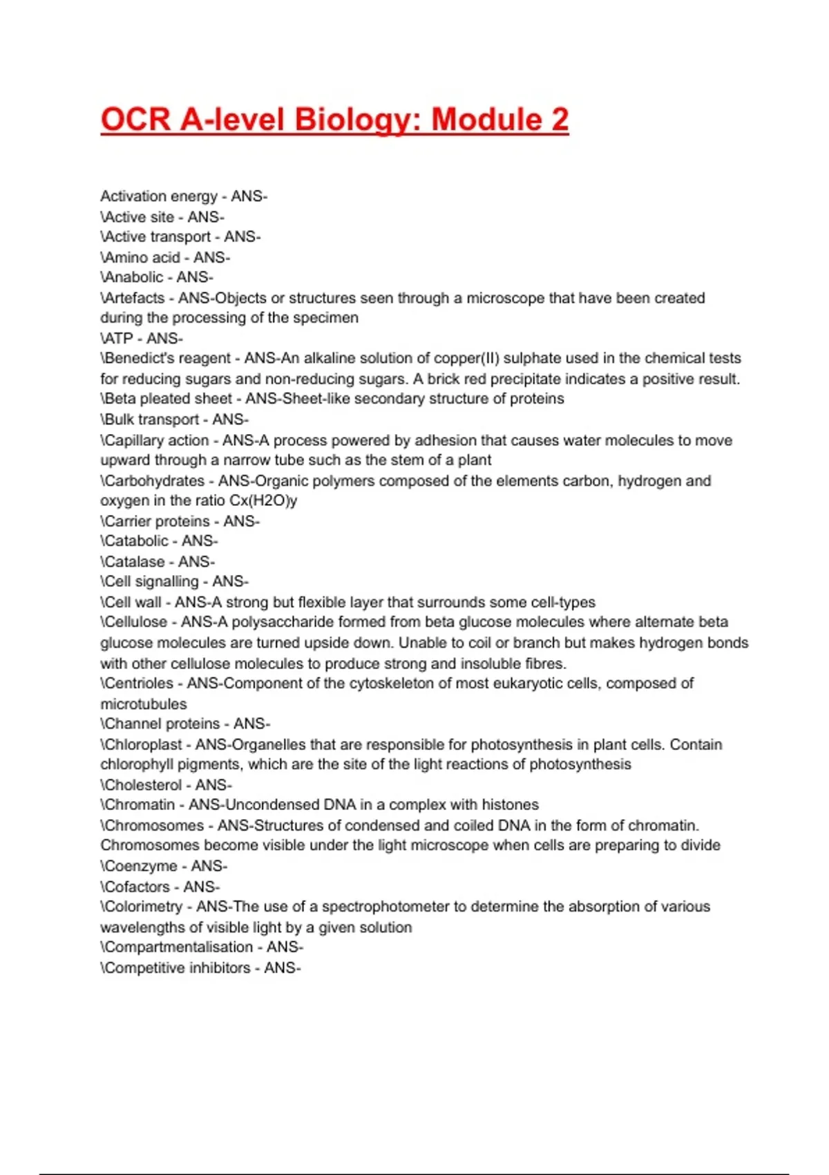 OCR A-level Biology: Module 2 Exam 2026/2027 Questions With Completed Solutions.