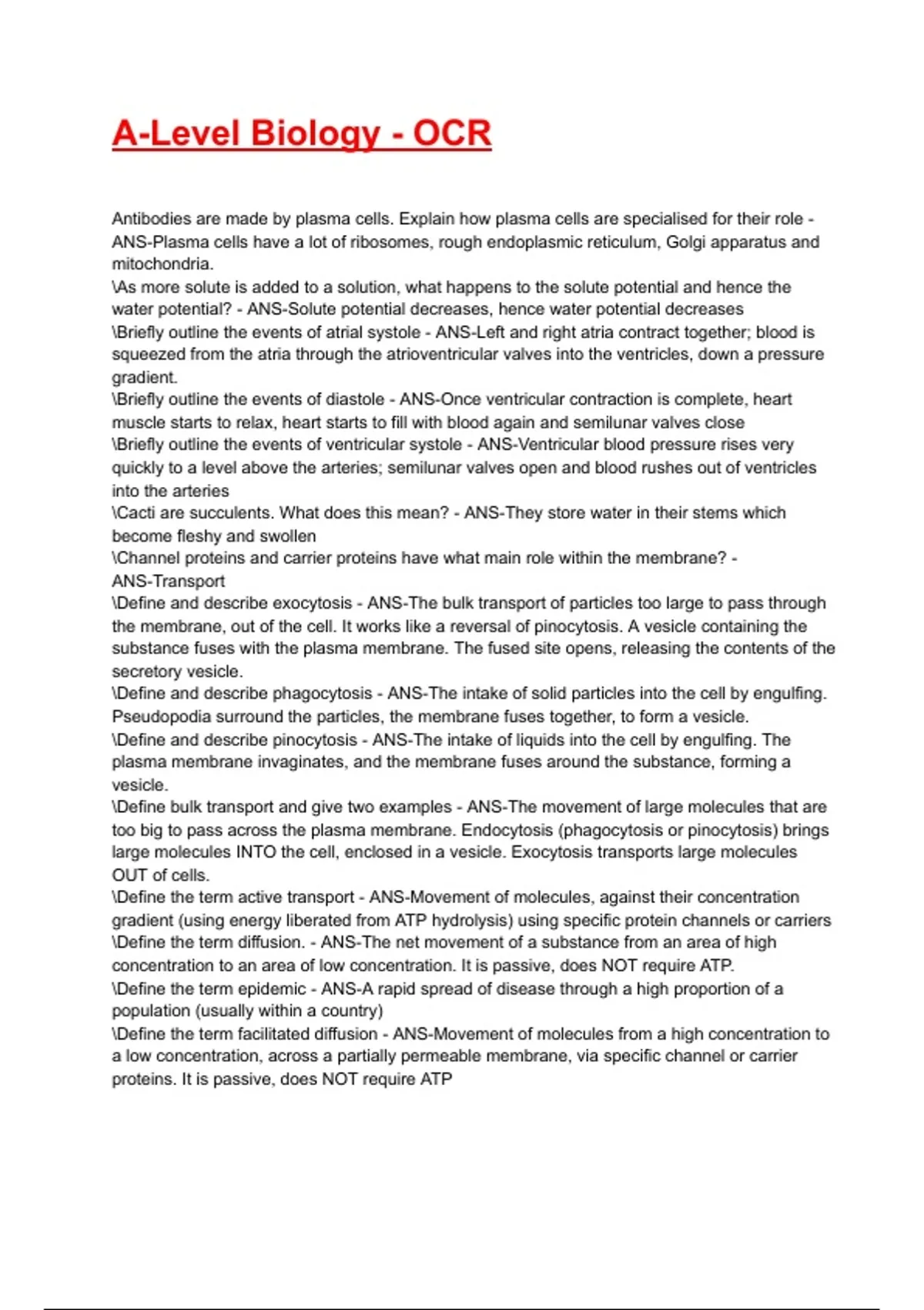 A-Level Biology - OCR Exam 2025/2026 Questions With Completed Solutions.
