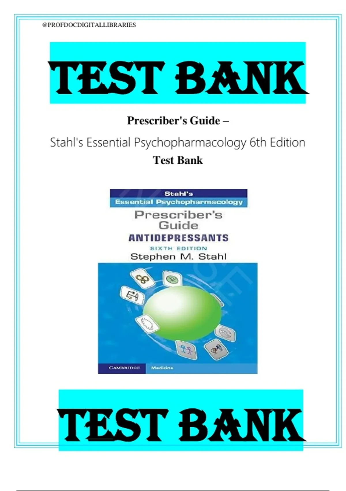 Test Bank for Prescriber's Guide: Stahl's Essential Psychopharmacology 6th Edition by Stephen M. Stahl |ISBN: 9781316618134| Guide A+