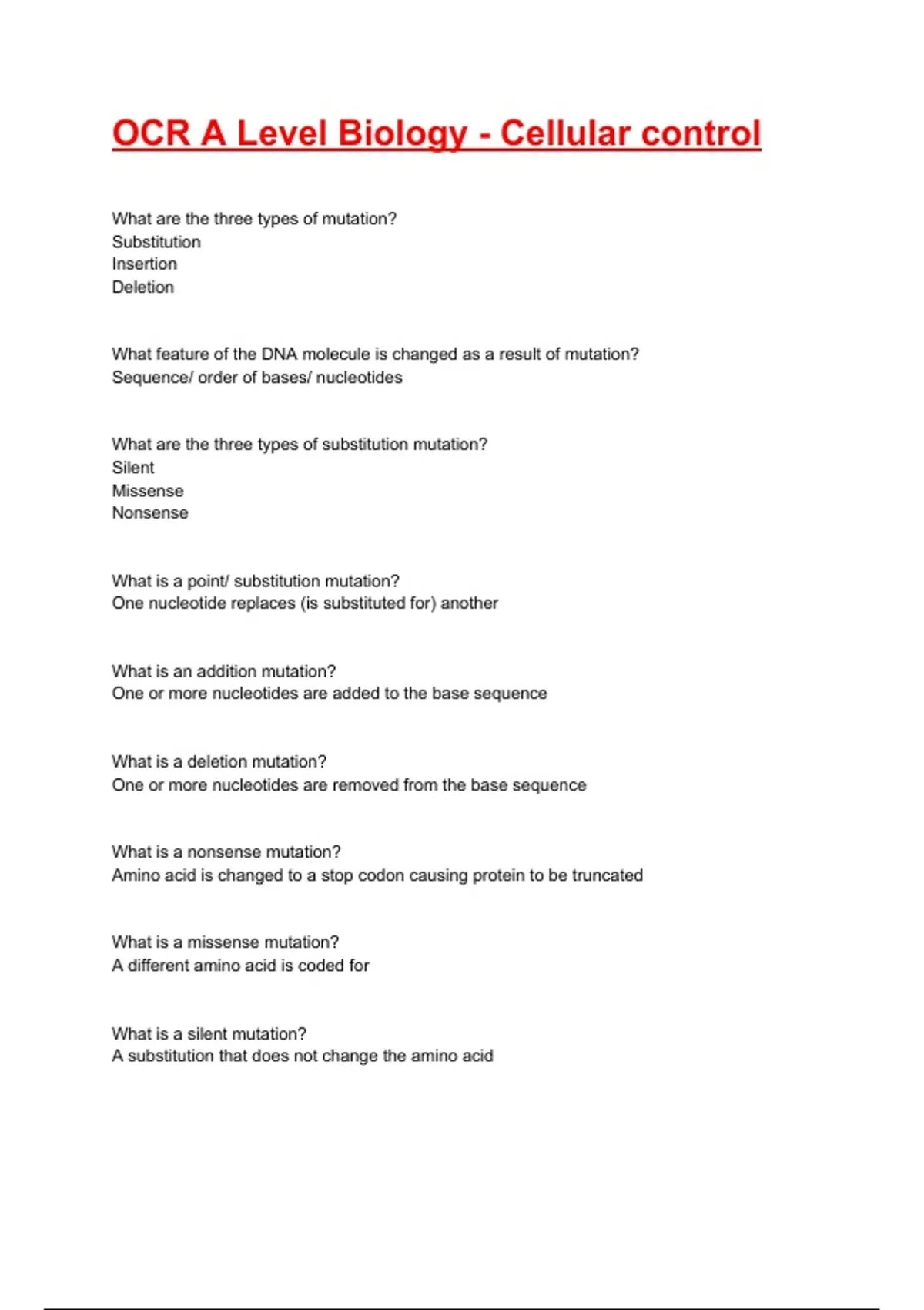 OCR A Level Biology - Cellular control