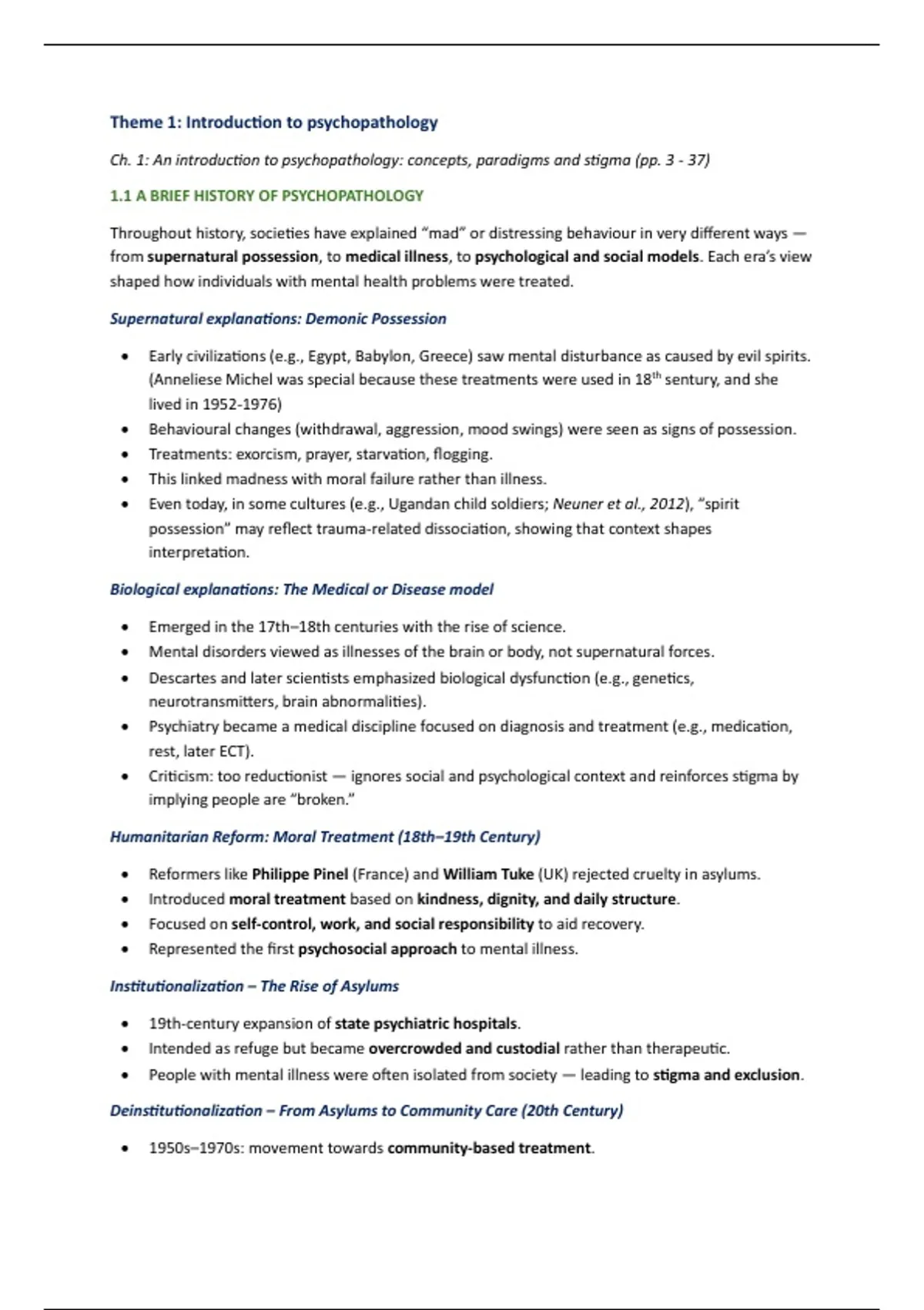A complete summary for the course Psychopathology for second-year bachelor students and pre-master psychology students. The summary covers all chapters listed below. For each chapter, every sub-section is included, and the chapter summary from the book is also integrated. From Psychopathology (Davey, 2021): Ch. 1: An introduction to psychopathology: concepts, paradigms and stigma (pp. 3 - 37) Ch. 2.1: Classification and assessment in clinical psychology (pp. 40 - 51) Ch. 6: Anxiety and Stressor-Related Problems (pp. 161 - 217) Ch. 7: Depression and Mood Disorders (pp. 219 - 260) Ch. 8: Experiencing psychosis: Schizophrenia spectrum problems (pp. 263 - 309) Ch. 9: Substance Use Disorders (pp. 312 - 359) Ch. 10: Eating Disorders (pp. 361 - 393) Ch. 12: Personality disorders (pp. 435 - 478) Ch. 13: Somatic Symptom Disorders (pp. 479 - 498) Ch. 15: Neurocognitive disorders (pp. 523 - 553) Ch. 16: Childhood and Adolescent Psychological Problems (pp. 555 - 592) From the reader: Biopsychology, Global Edition (Pinel & Barnes, 2018) Ch. 15: Drug addiction and the Brain's reward circuits (pp. 413 – 439) Ch. 17: Biopsychology of emotion, stress, and health (pp. 473 – 496) Ch. 18: Biopsychology of psychiatric disorders(pp. 497 – 523) From the Handbook of Insomnia (Taylor et al., 2014) Ch. 1: Clinical features of insomnia (pp. 1 - 10) Ch. 3: Patient assessment in insomnia (pp. 29 - 36) Ch. 4: Treating insomnia (pp. 37 - 56).