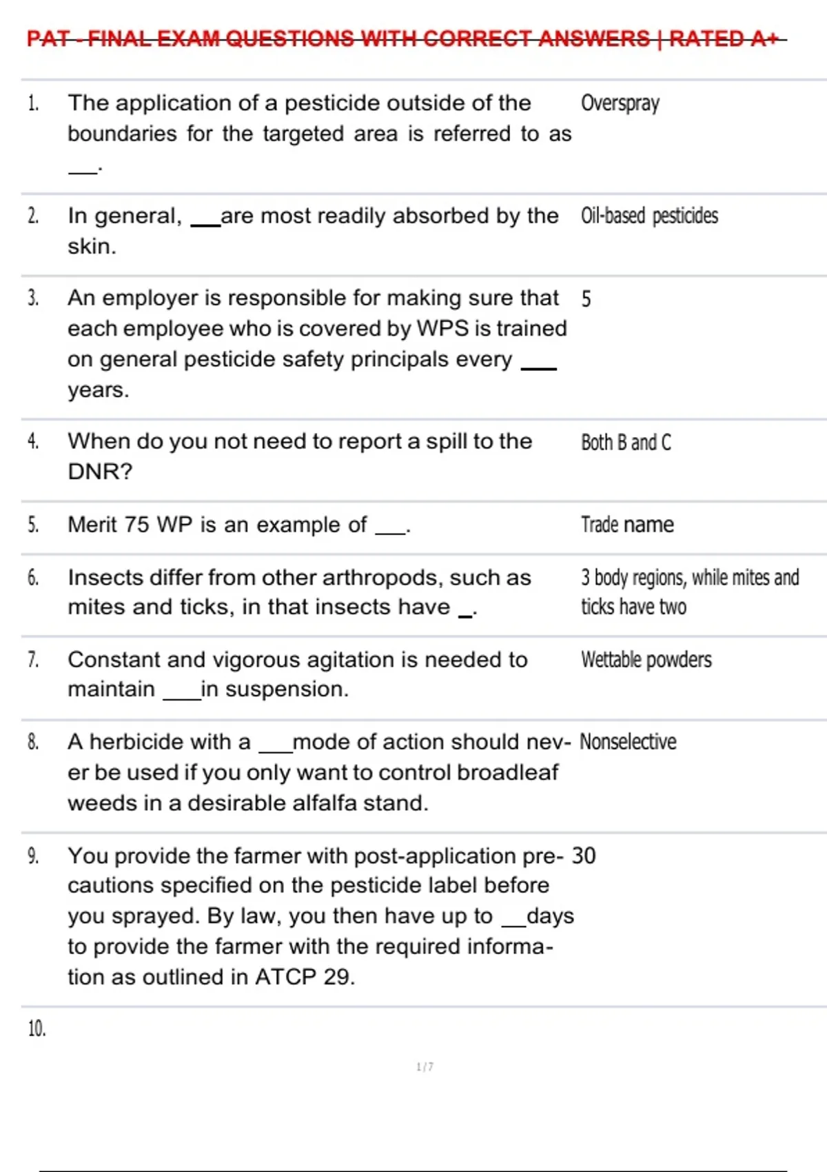 PAT - FINAL EXAM QUESTIONS WITH CORRECT ANSWERS | RATED A+