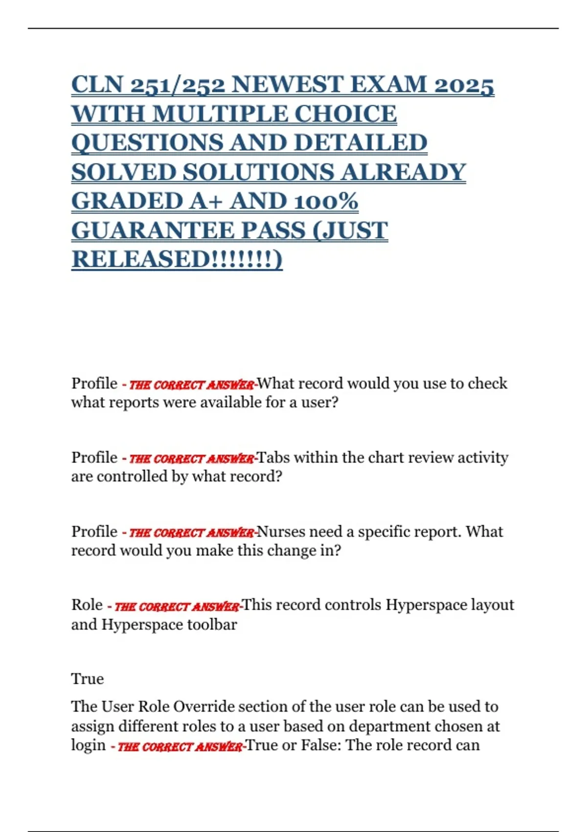 CLN 251/252 NEWEST EXAM 2025 WITH MULTIPLE CHOICE QUESTIONS AND DETAILED SOLVED SOLUTIONS ALREADY GRADED A+ AND 100% GUARANTEE PASS (JUST RELEASED!!!!!!!)