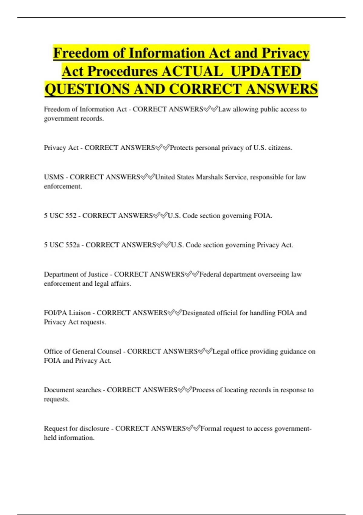 Freedom of Information Act - CORRECT ANSWERS✅✅Law allowing public access to
