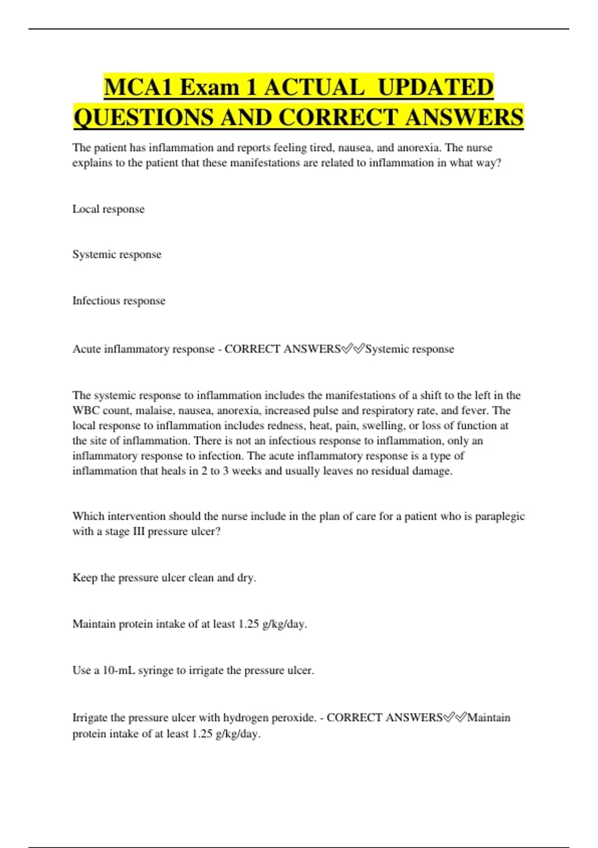 ANSWERS✅✅An older patient who is septic, bedridden, and incontinent