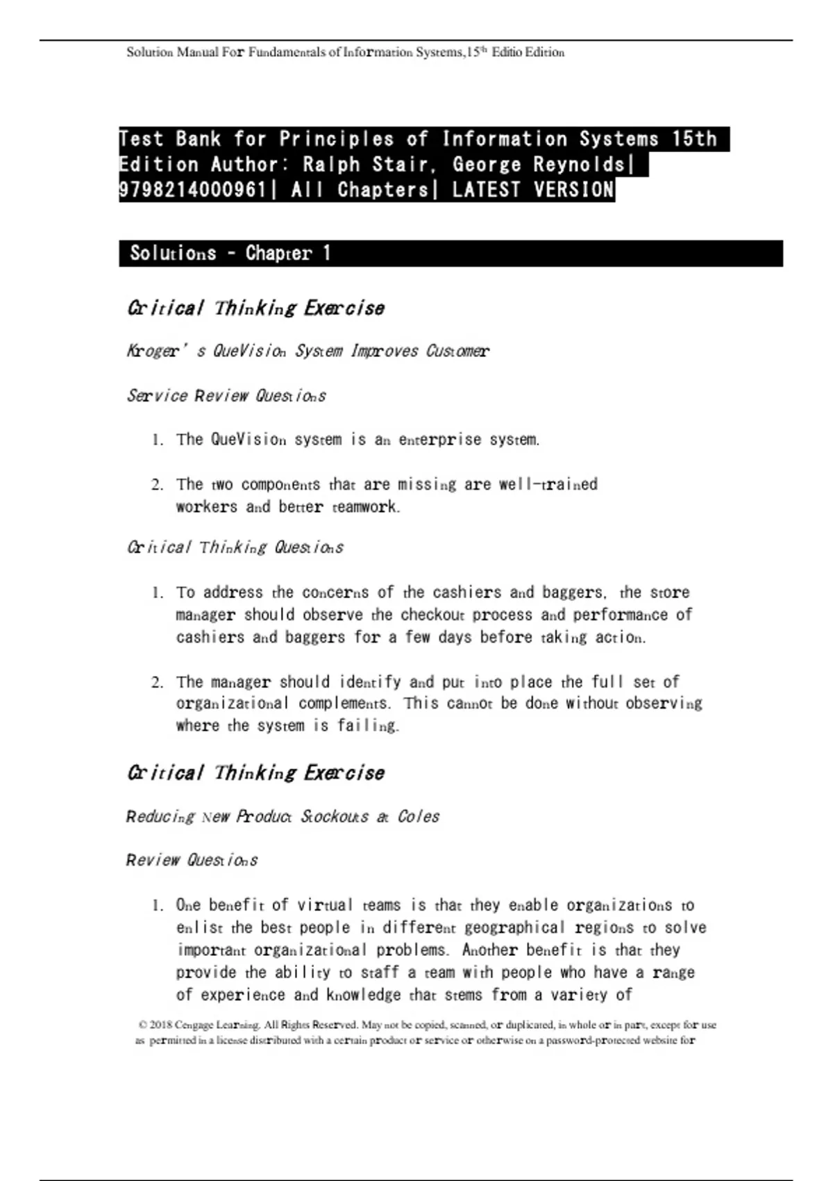 Test Bank for Principles of Information Systems 15th