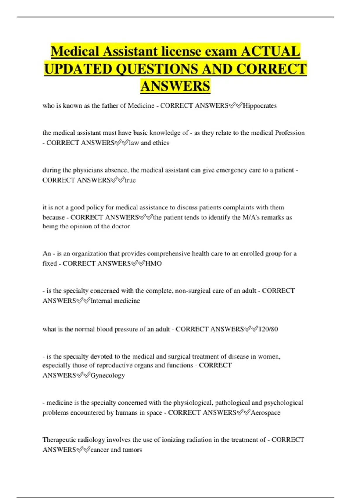 ANSWERS✅✅Internal medicine