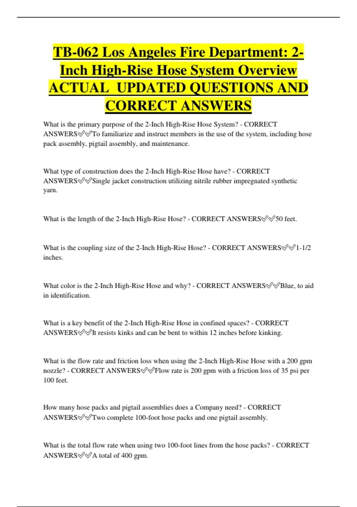 nozzle? - CORRECT ANSWERS✅✅Flow rate is 200 gpm with a friction loss of 35 psi per