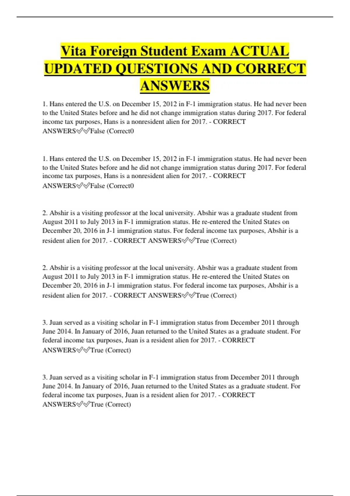 resident alien for 2017. - CORRECT ANSWERS✅✅False (Correct)
