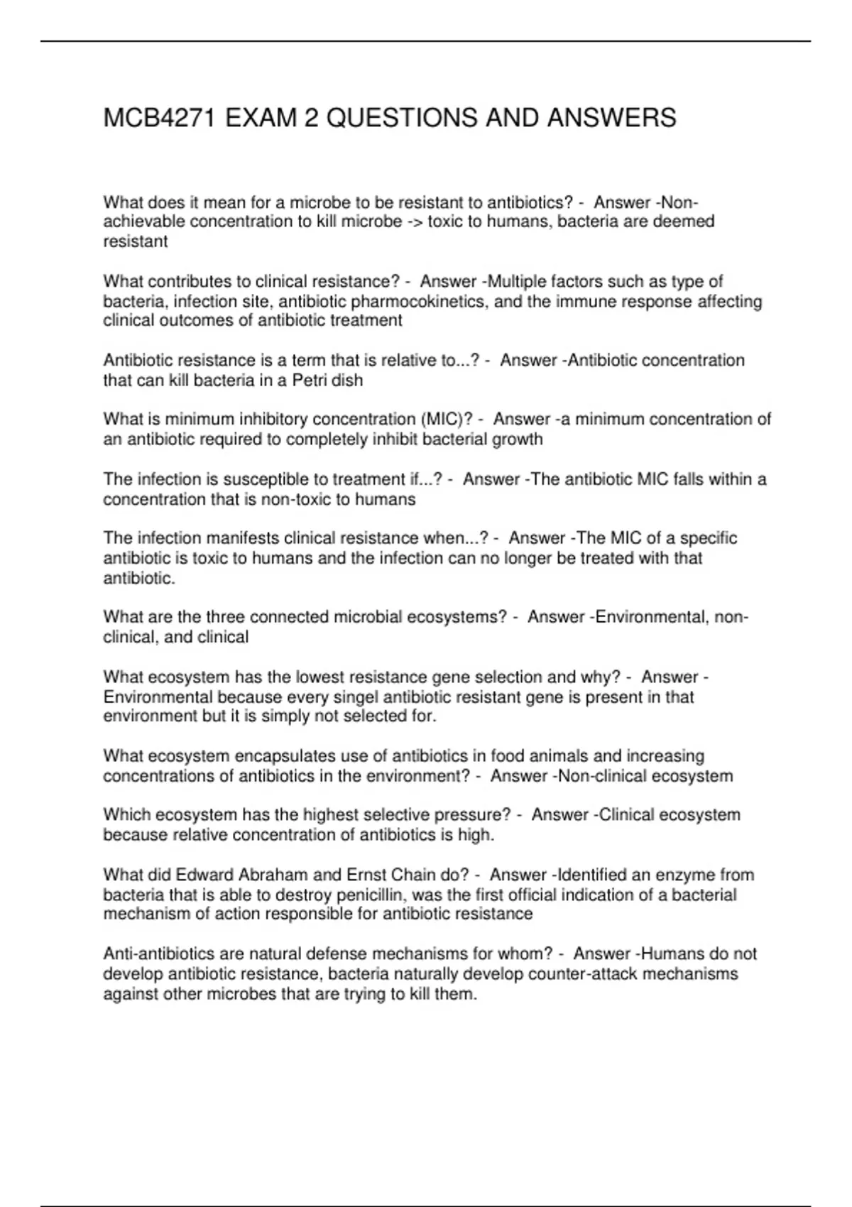 MCB4271 EXAM 2 QUESTIONS AND ANSWERS