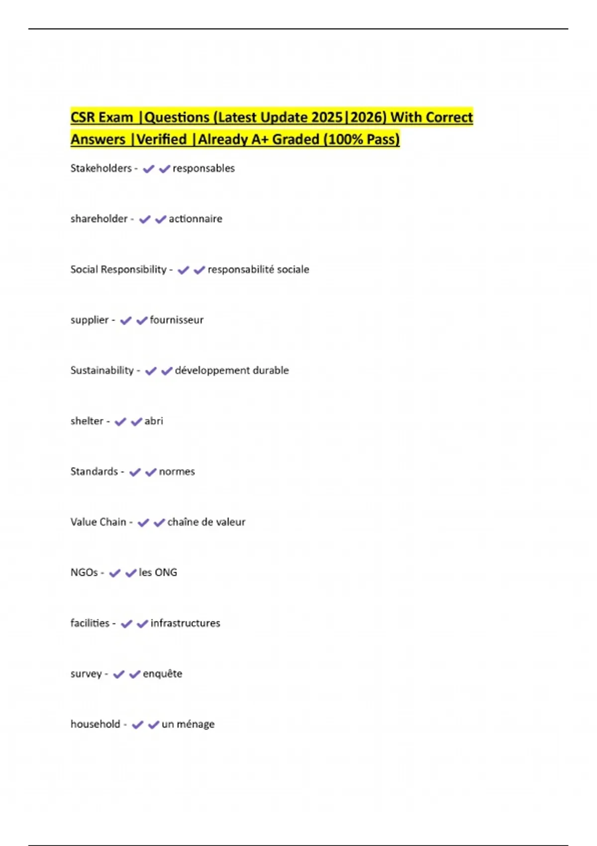 CSR Exams Bundles With Correct Answers |Verified |Already A+ Graded (100% Pass)