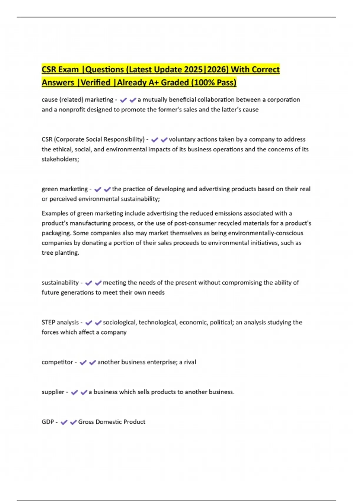 CSR Exam |Questions (Latest Update 2025|2026) With Correct Answers |Verified |Already A+ Graded (100% Pass)