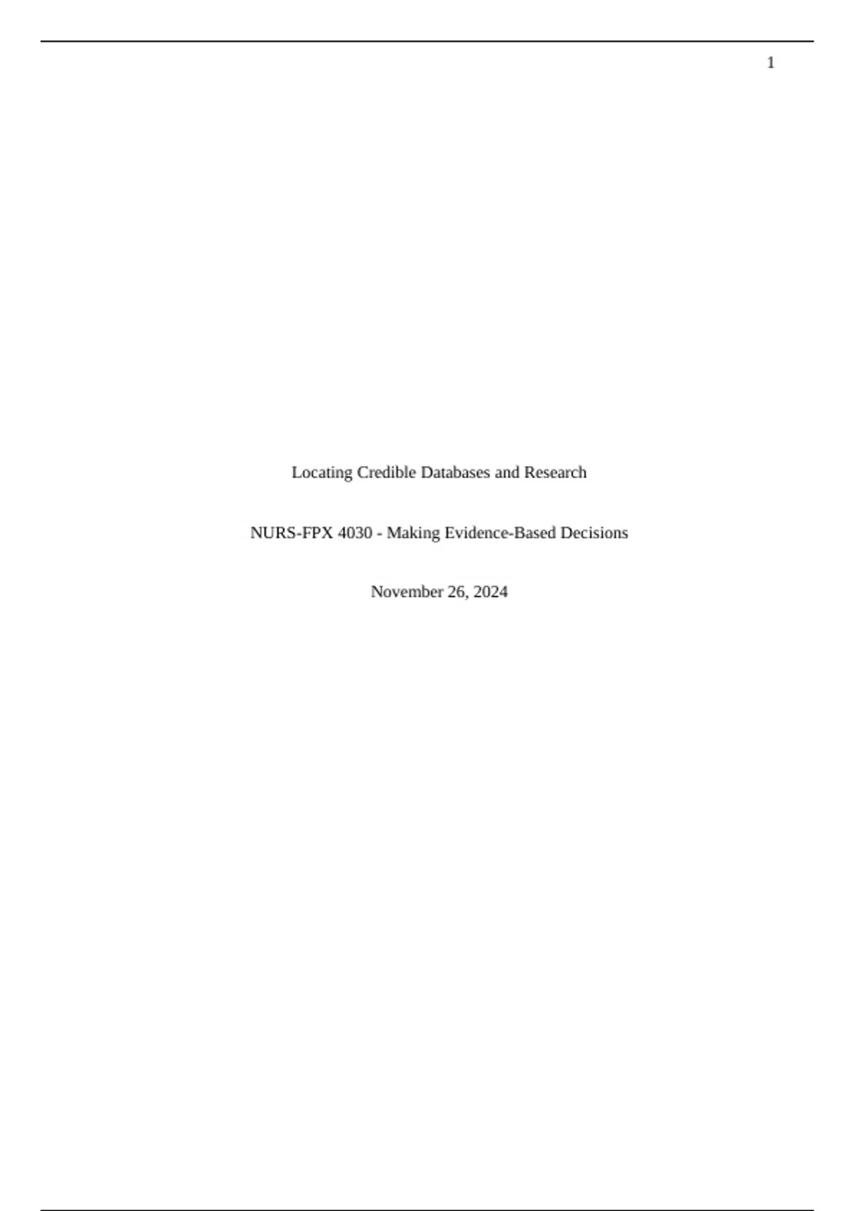 NURS-FPX 4030 - Making Evidence-Based Decisions