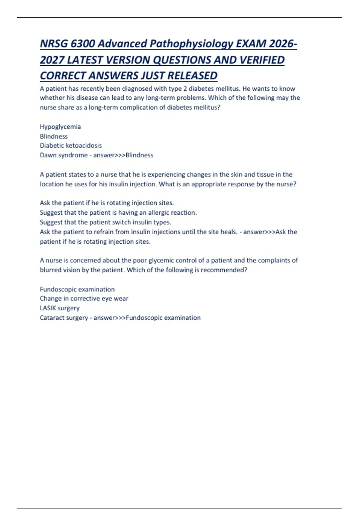 CORRECT ANSWERS JUST RELEASED