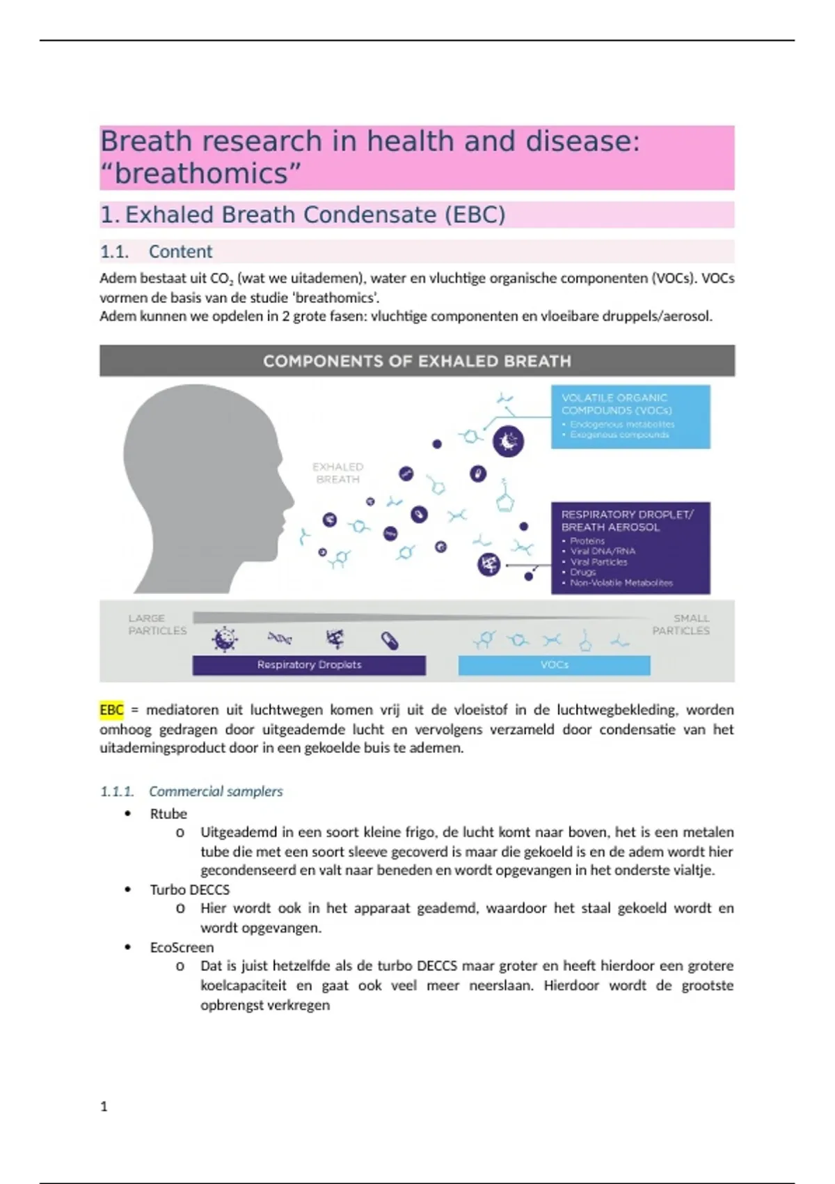 EBC = mediatoren uit luchtwegen komen vrij uit de vloeistof in de luchtwegbekleding, worden