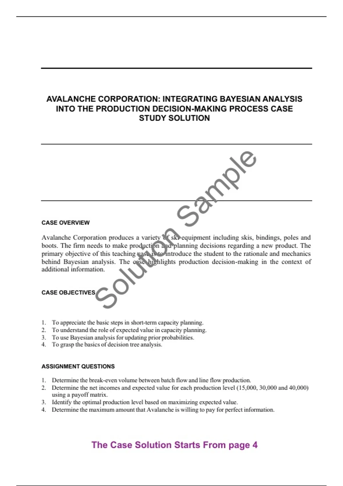 Get the Avalanche Corporation Integrating Bayesian Analysis into the Production Decision-making Process Case Study Solution and Analysis by Owen Hall, Kenneth Ko | Case ID: 9B11D006 / W11085. We guarantee that this case solution is 100% original, official, and not AI-generated. It is a plagiarism-free, complete, and well-structured solution, perfect for exam preparation, assignments, and research.