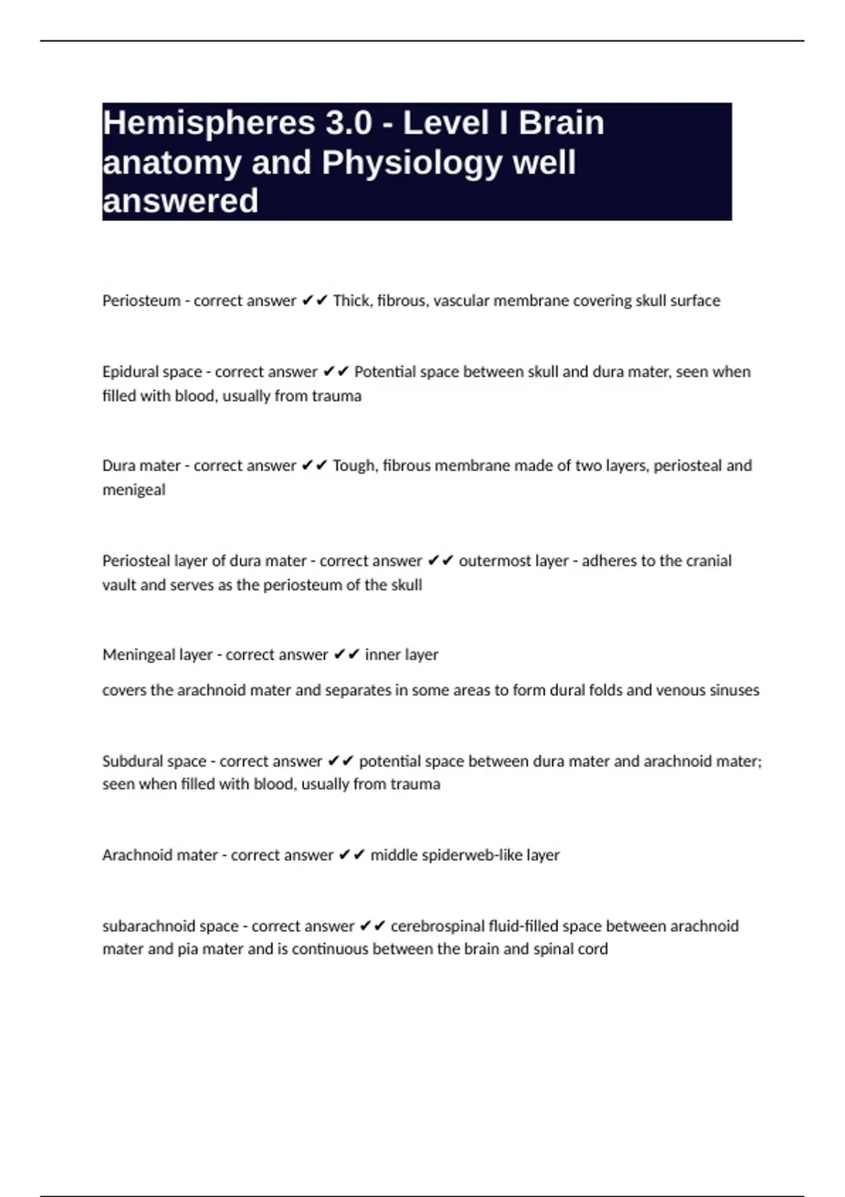Meningeal layer - correct answer ✔✔ inner layer