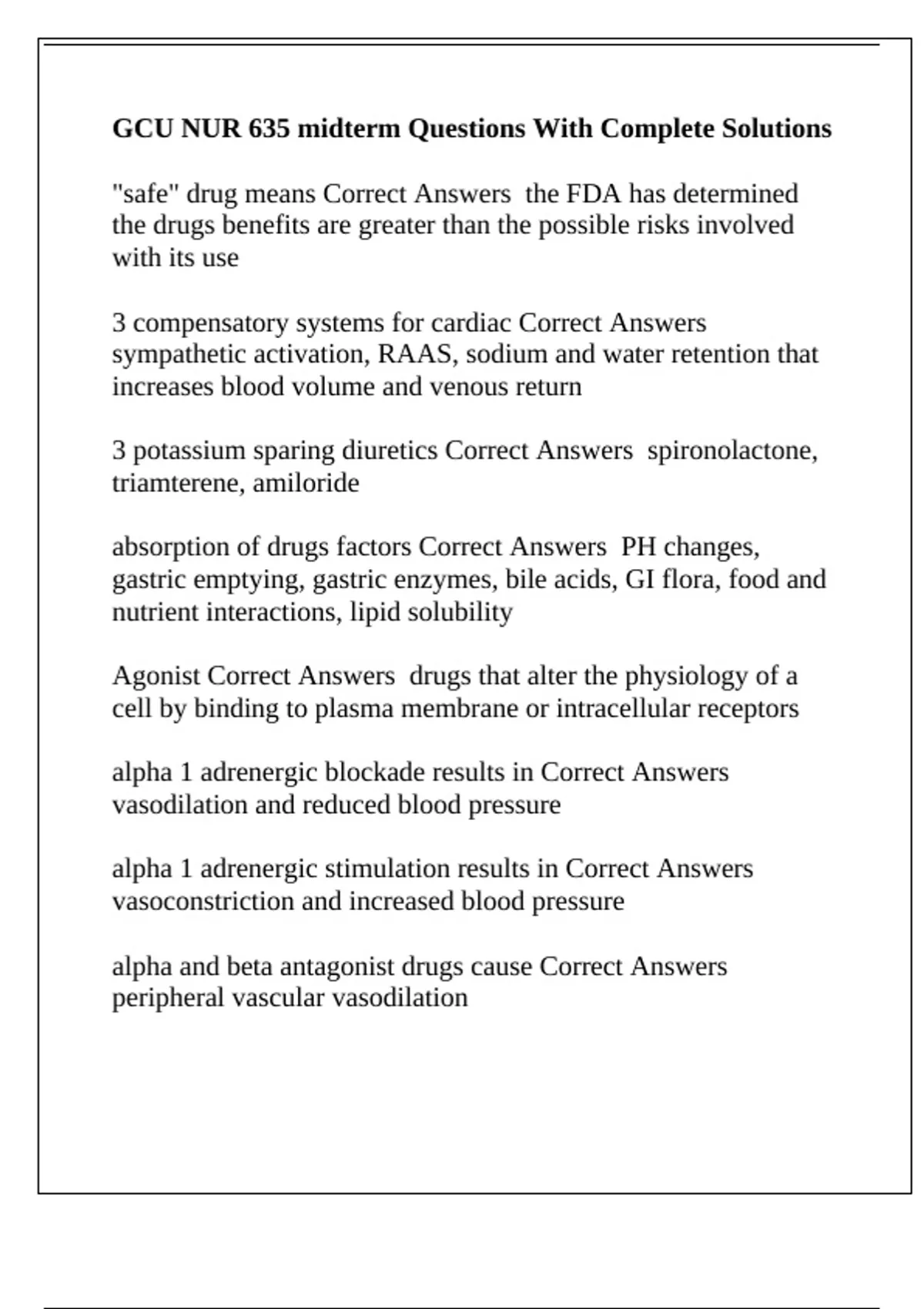 NUR635/ NUR 635 Grand Canyon University -GCU NUR 635 midterm Questions With Complete Solutions.