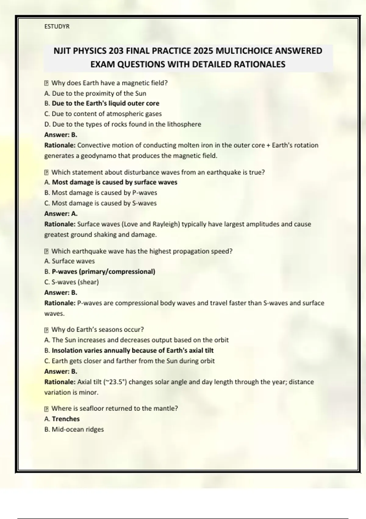 NJIT PHYSICS 203 FINAL PRACTICE 2025 MULTICHOICE ANSWERED EXAM QUESTIONS WITH DETAILED RATIONALES
