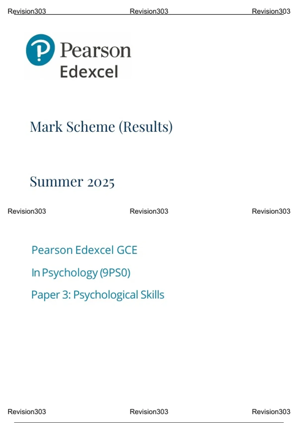 A-Level Edexcel 2025 Psychology Paper 3 Mark Scheme