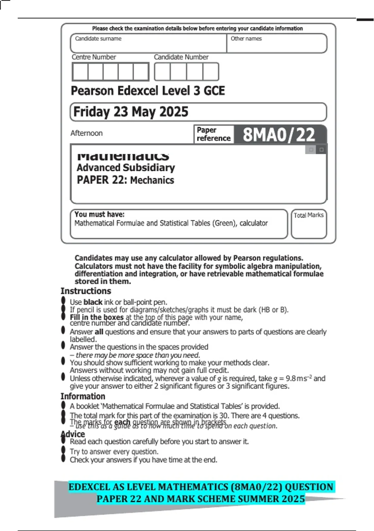PAPER 22 AND MARK SCHEME SUMMER 2025