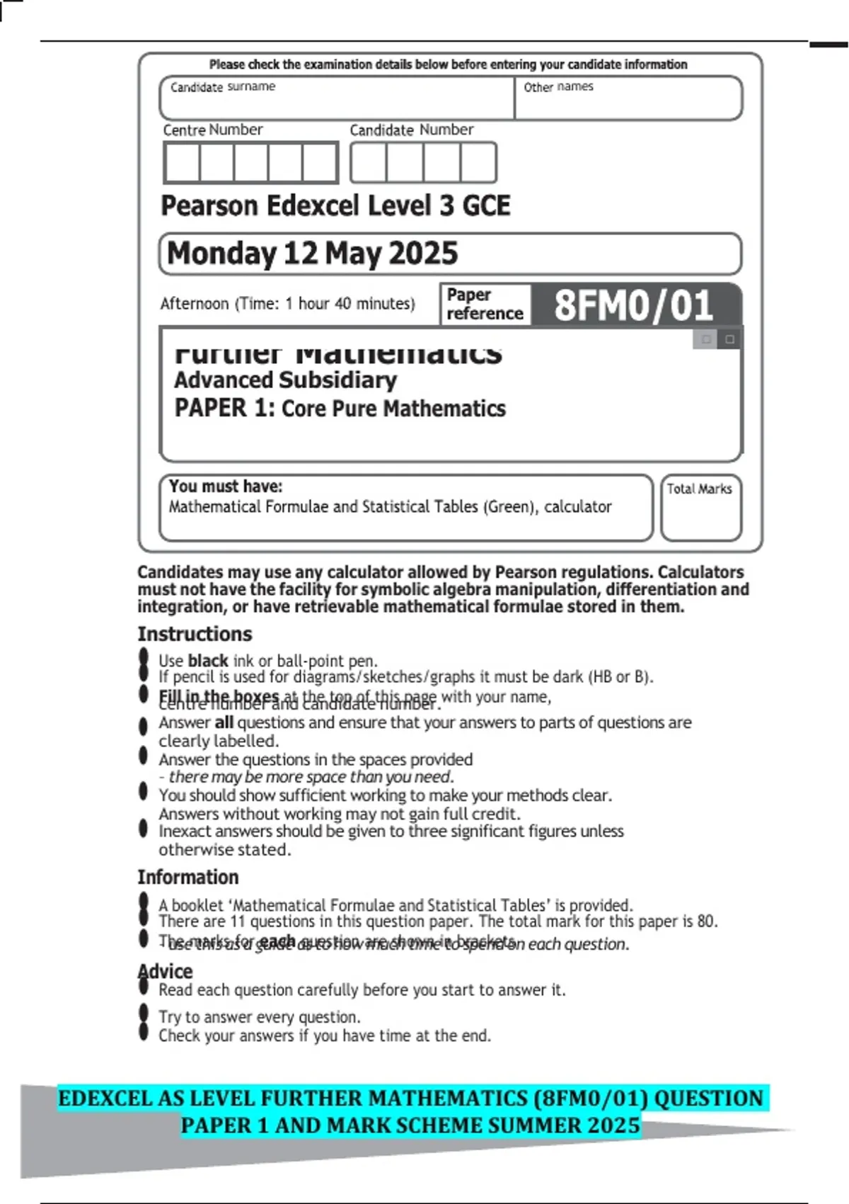 PAPER 1: Core Pure Mathematics