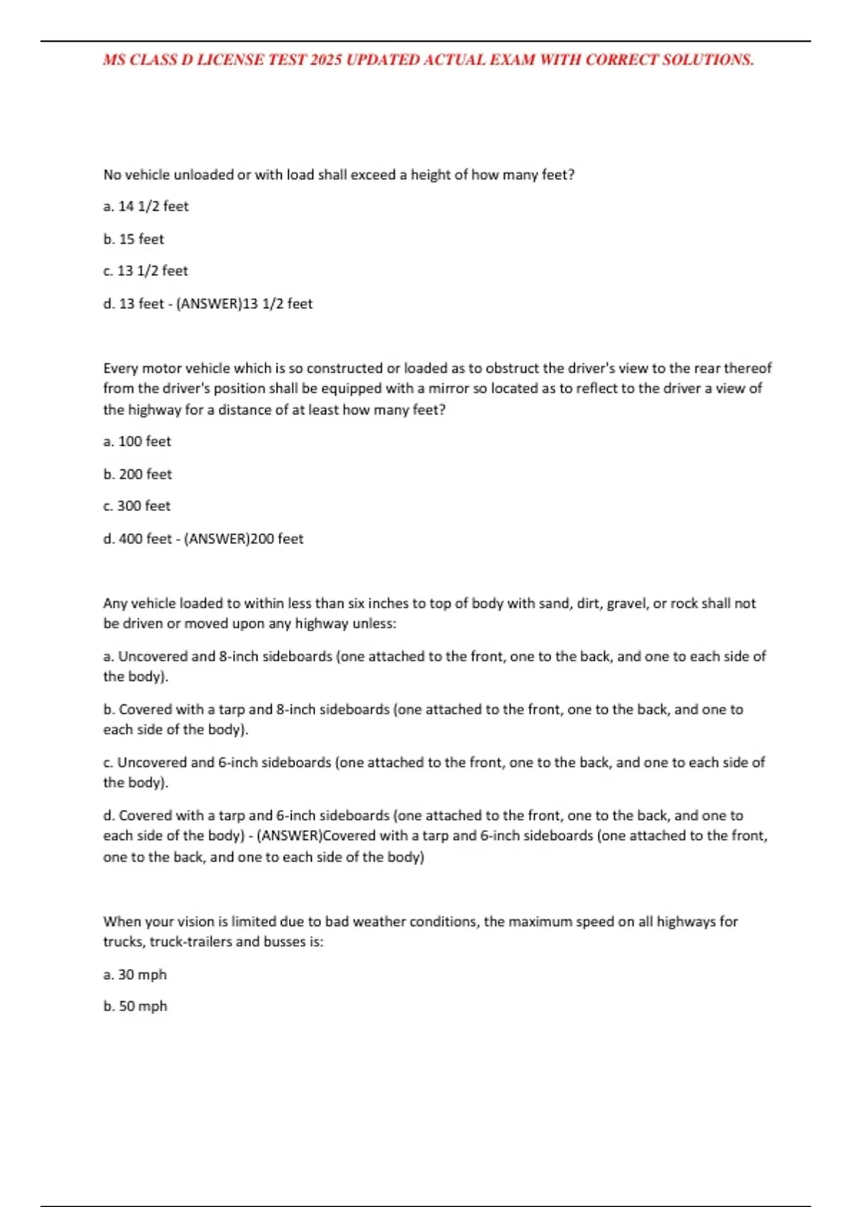 MS CLASS D LICENSE TEST 2025 UPDATED ACTUAL EXAM WITH CORRECT SOLUTIONS.