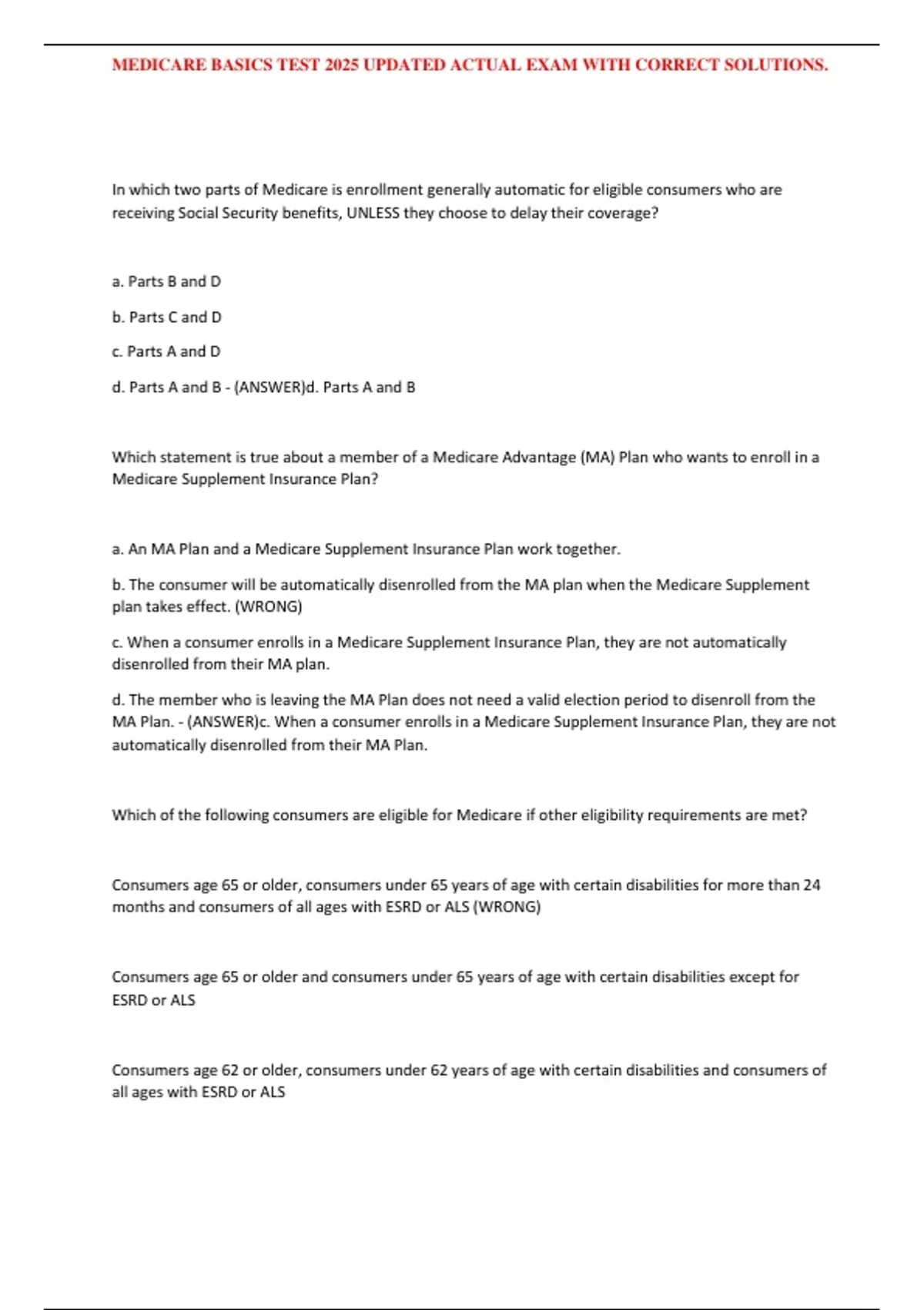 MEDICARE BASICS TEST 2025 UPDATED ACTUAL EXAM WITH CORRECT SOLUTIONS.