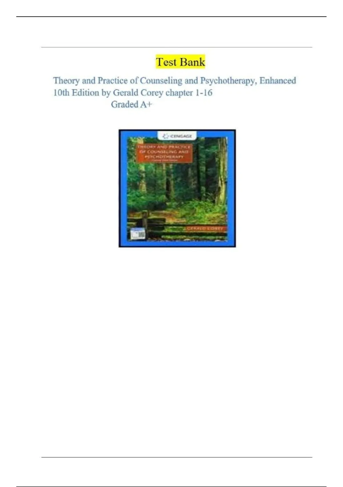 TEST BANK FOR THEORY AND PRACTICE OF COUNSELING AND PSYCHOTHERAPY 10TH EDITION BY GERALD COREY ALL CHAPTERS 1- 17 COVERED COMPLETE VERIFIED QUESTIONS & 100% CORRECT ANSWERS (BEST ANSWERS) A+ GUARANTEED PASS