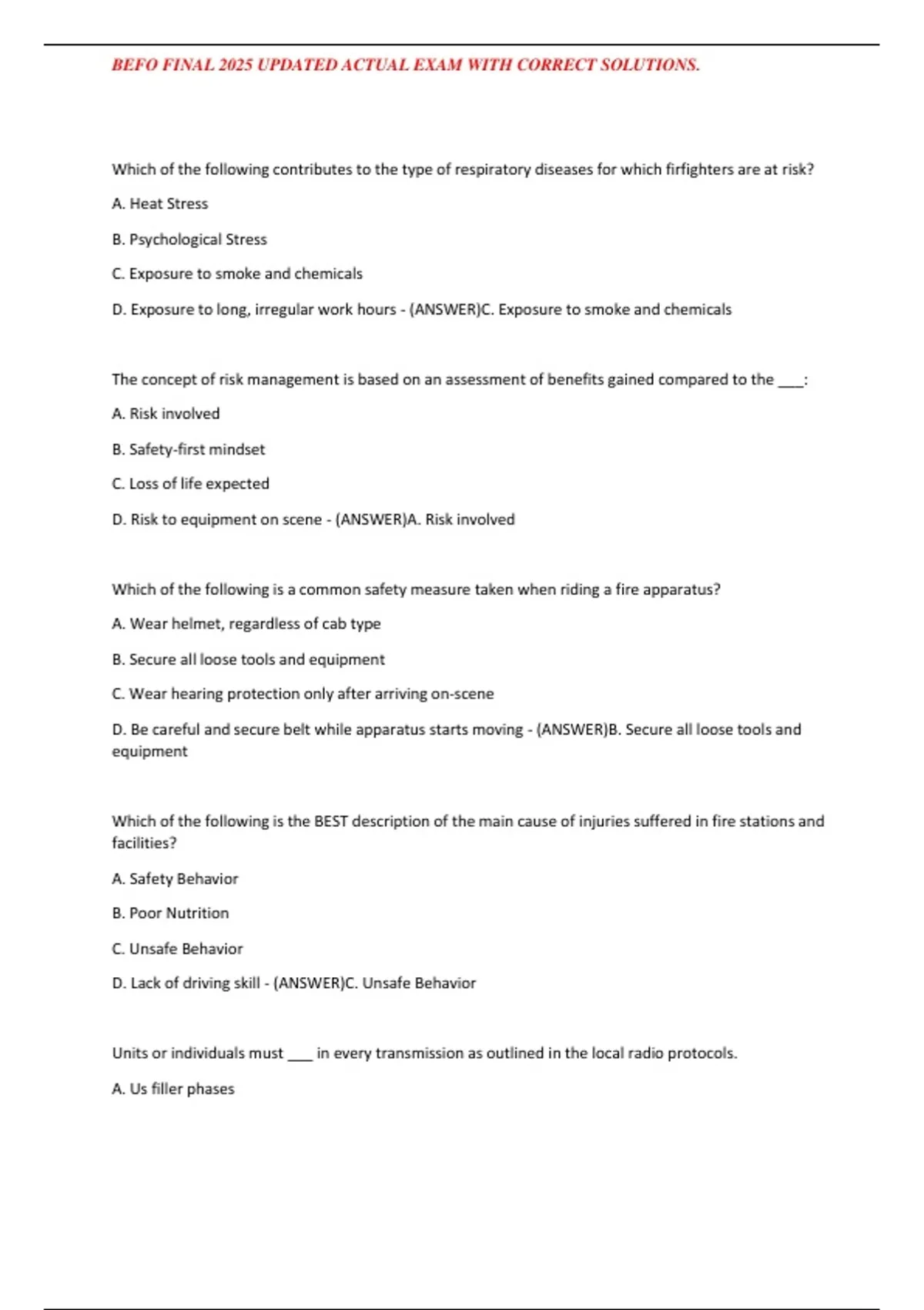 , BEFO FINAL 2025 UPDATED ACTUAL EXAM WITH CORRECT SOLUTIONS.