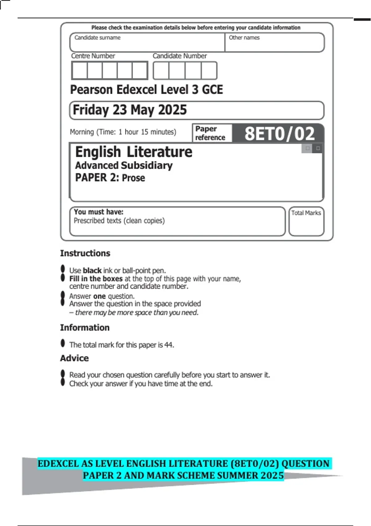 PAPER 2 AND MARK SCHEME SUMMER 2025