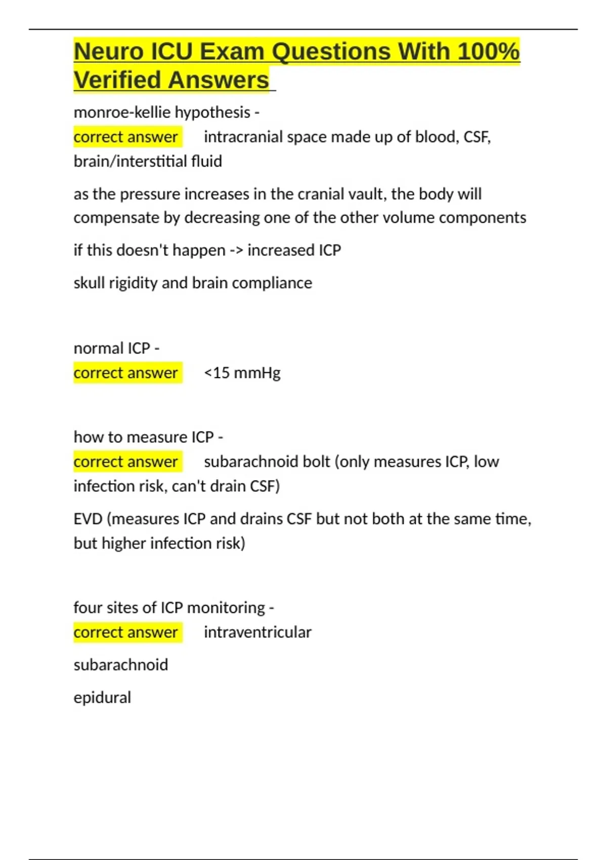 , Neuro ICU Exam Questions With 100%
