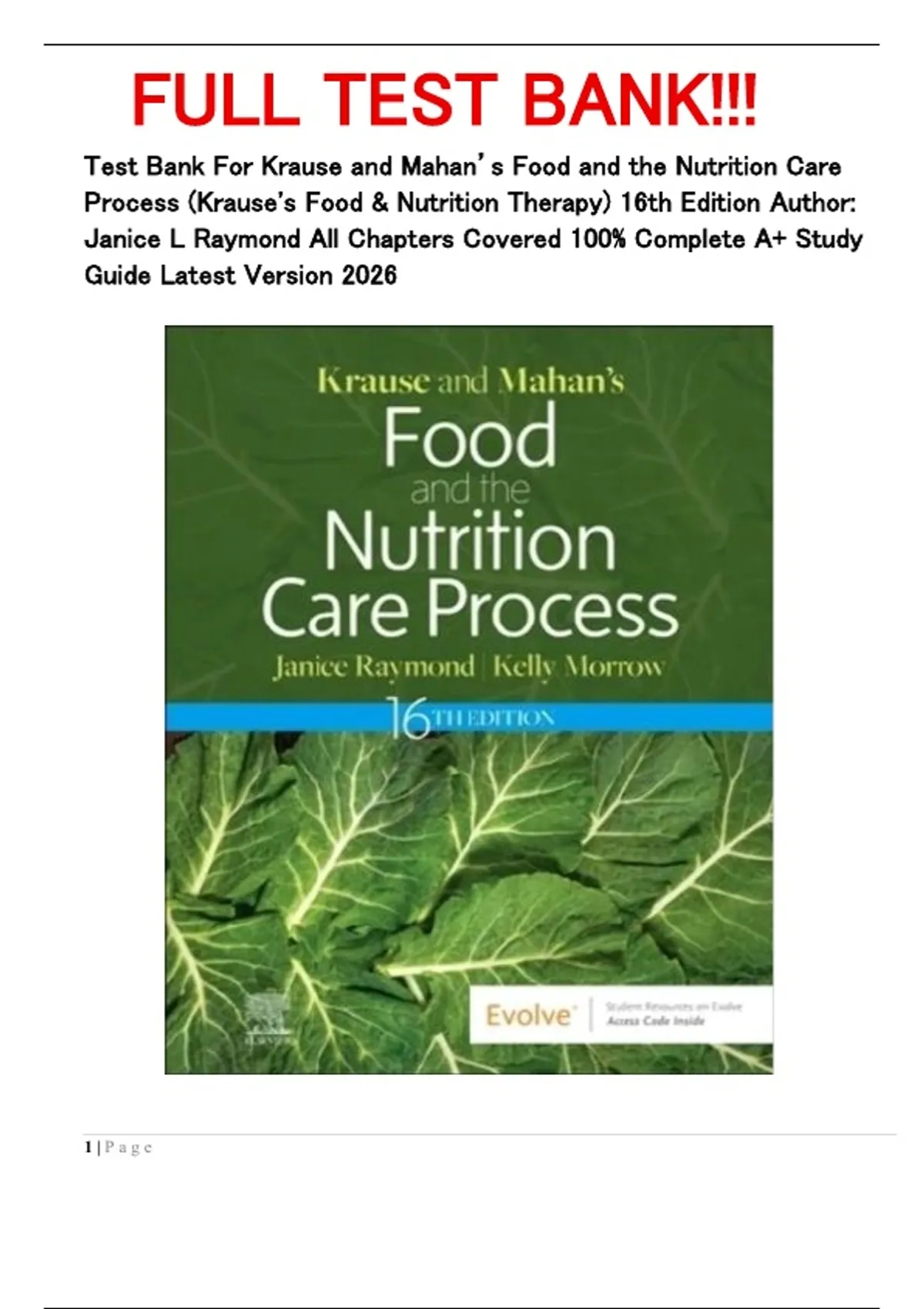 Raymond: Krause and Mahan’s Food and the Nutrition Care Process, 16th Edition