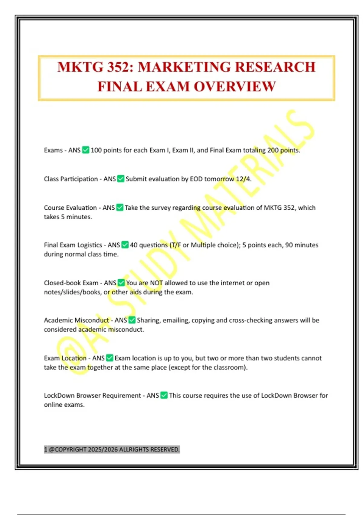 Course Evaluation - ANS Take the survey regarding course evaluation of MKTG 352, which