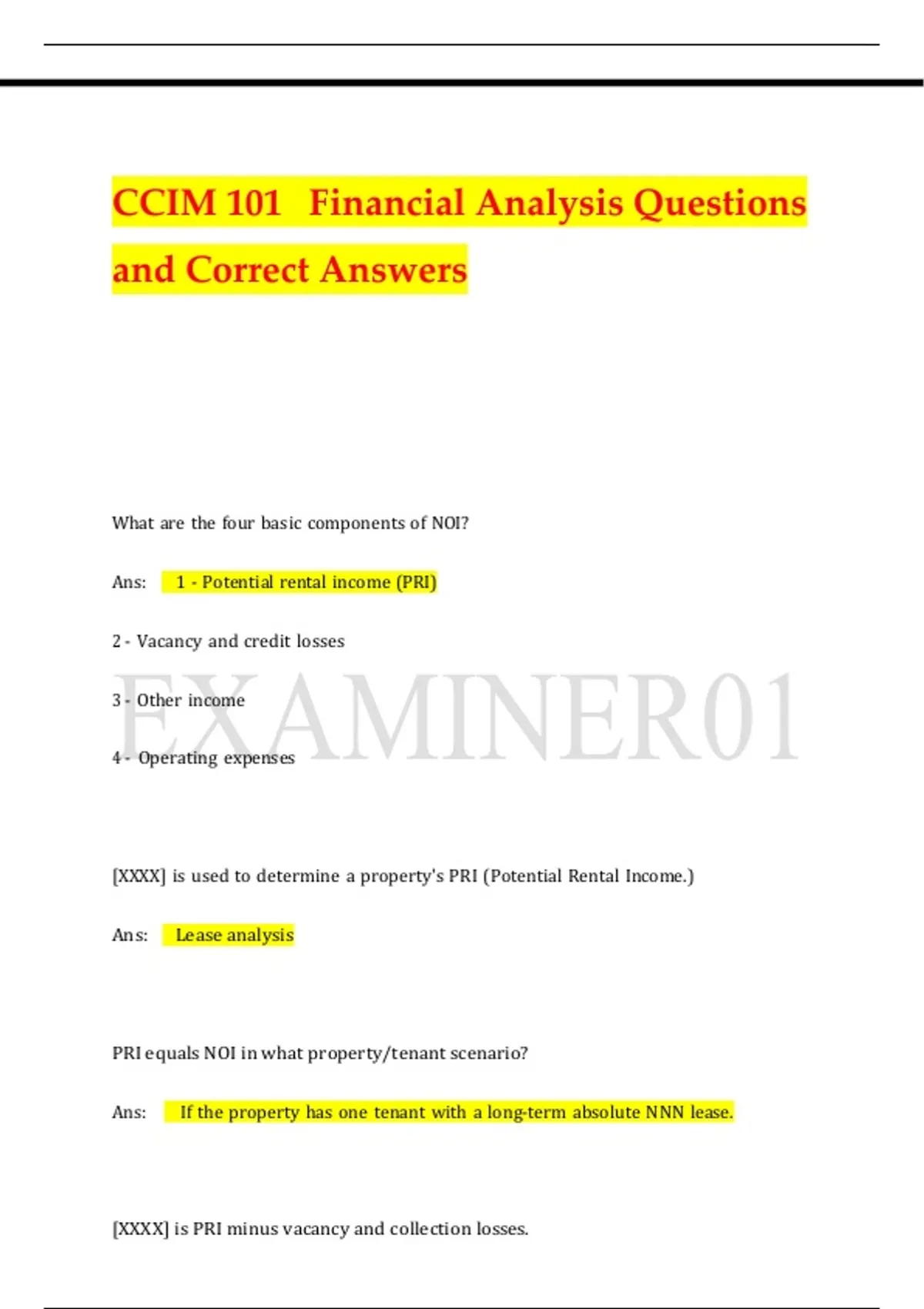 CCIM 101 Financial Analysis – Q&A Pack